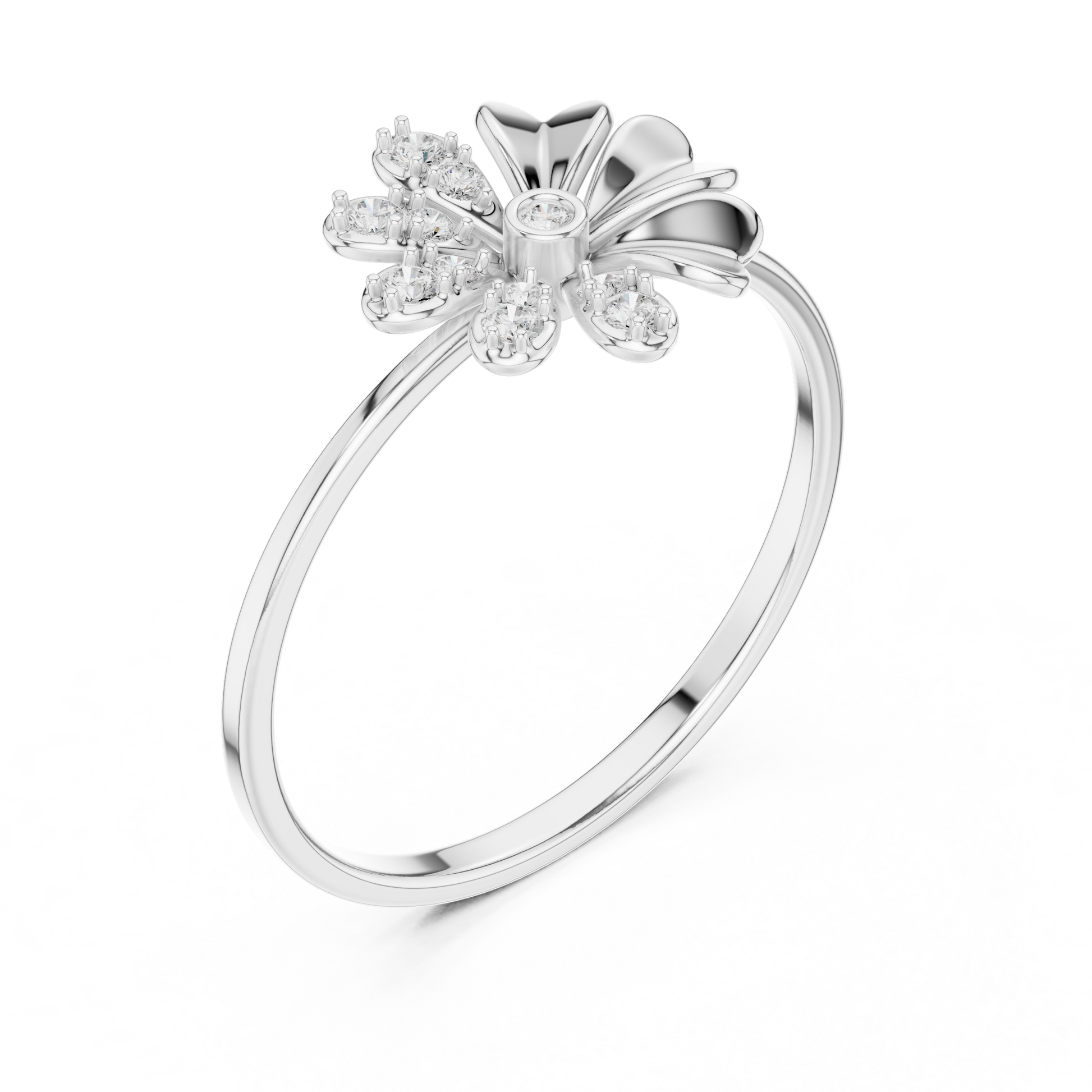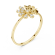 This enchanting ring showcases a beautifully crafted asymmetrical floral motif, where half the petals glisten with brilliant-cut diamonds while the other half shine with smooth gold. The contrasting textures create a captivating balance of sparkle and elegance, making it a standout piece for anyone who loves jewelry that combines artistic design with luxurious craftsmanship.
