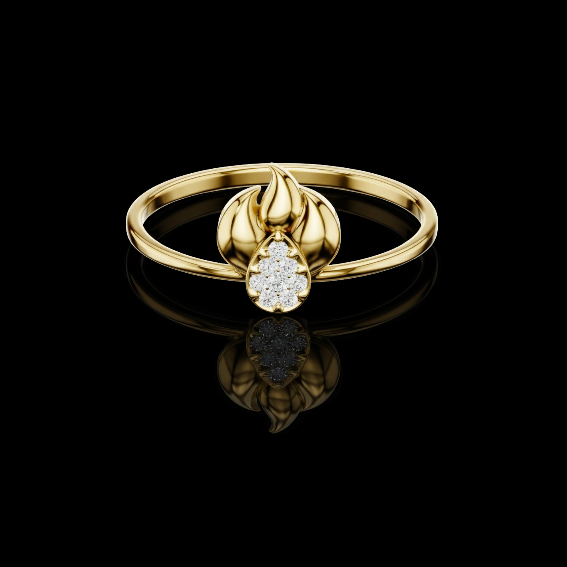 Ignite your style with this striking, symbolic piece crafted in luxurious . The ring features a beautifully sculpted flame-inspired motif, representing strength, passion, and transformation. At its center rests a dazzling teardrop diamond cluster, adding brilliance and elegance to the bold design.Perfect for those who love meaningful jewelry with a touch of modern artistry, this ring blends radiant craftsmanship, captivating sparkle, and unique sculptural detail into one unforgettable accessory.