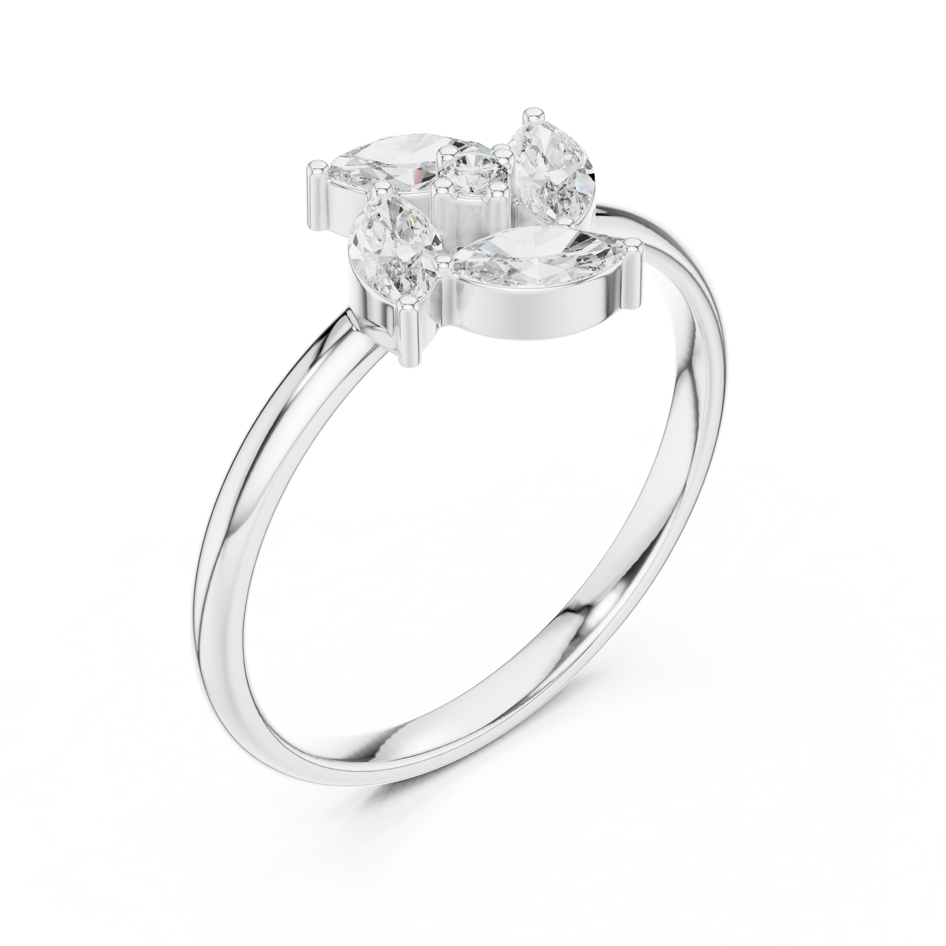 0.01 CT Marquise Lab Grown Diamond Cluster Floral Elegant Petal Shaped Statement Ring for Women