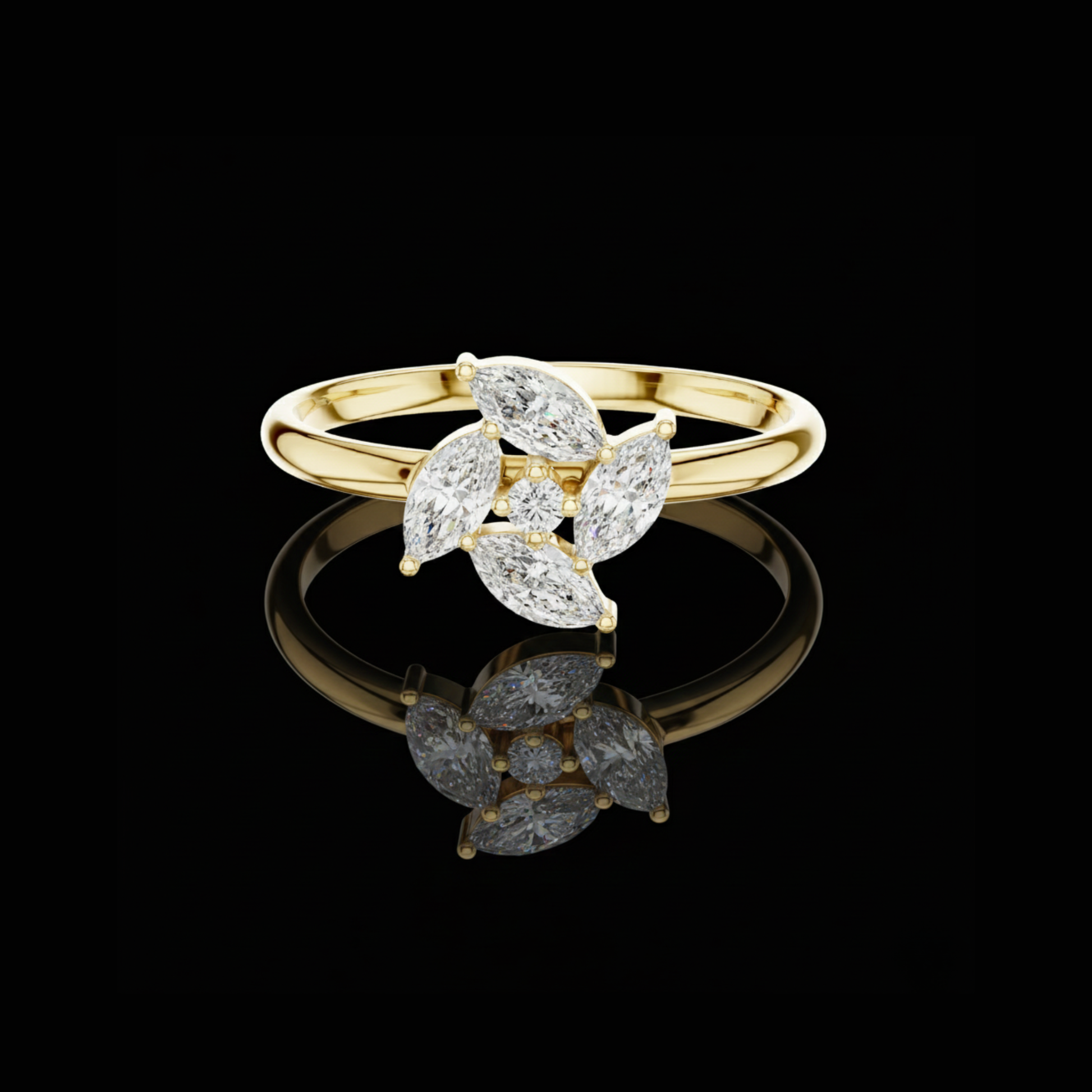 This exquisite ring from Ivevar Luxury showcases a breathtaking arrangement of marquise-cut diamonds set in a radiant cluster design that forms a graceful leaf-inspired silhouette. this piece combines bold sparkle with refined minimalism, creating a timeless look that suits both daily wear and special occasions. The finely arranged marquise stones deliver exceptional brilliance, while the slim gold band adds a touch of modern elegance. Designed for women who adore unique yet sophisticated jewelry, this ring is a perfect gift that captures luxury, style, and artistry in every detail.