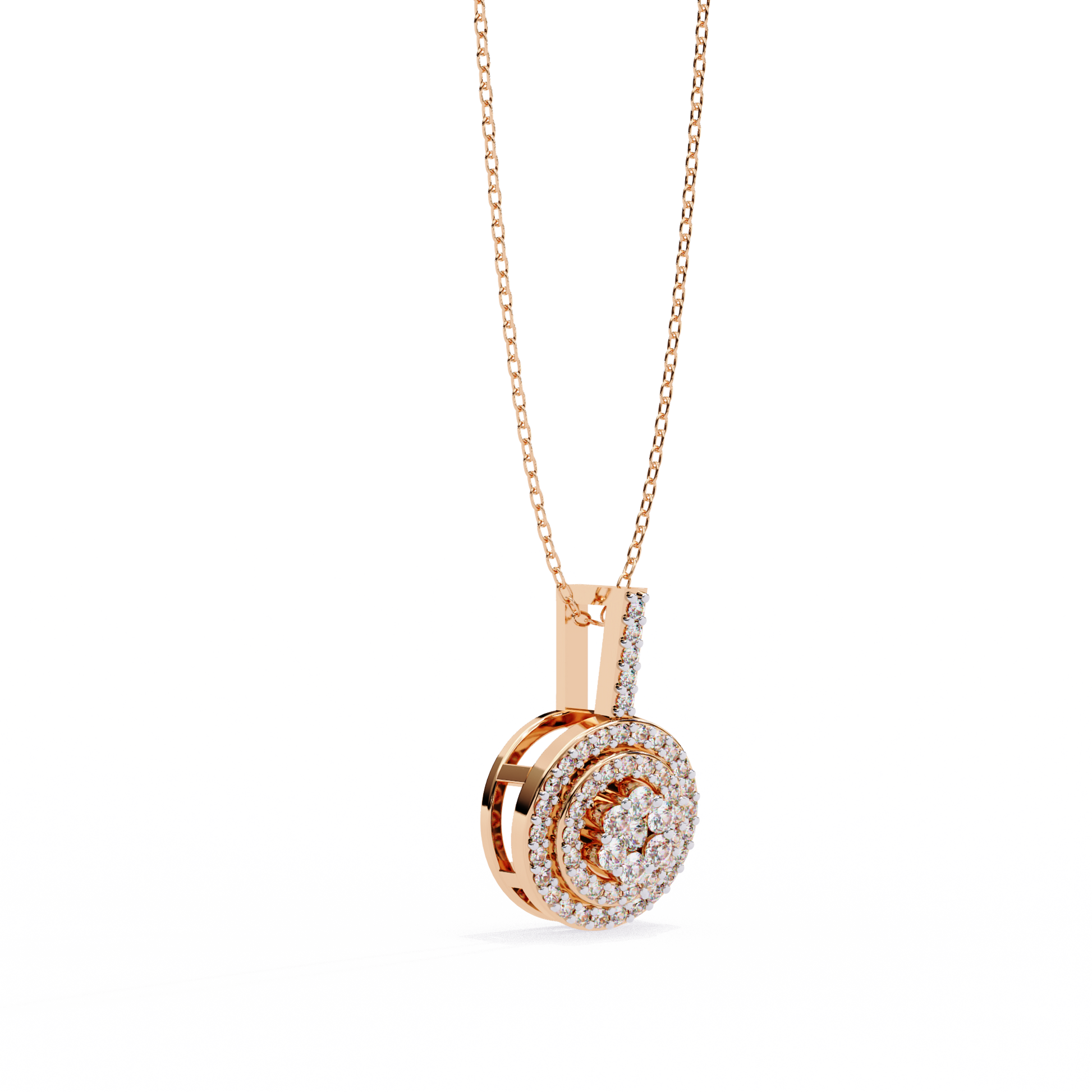 Double Halo Diamond Pendant in Gold
