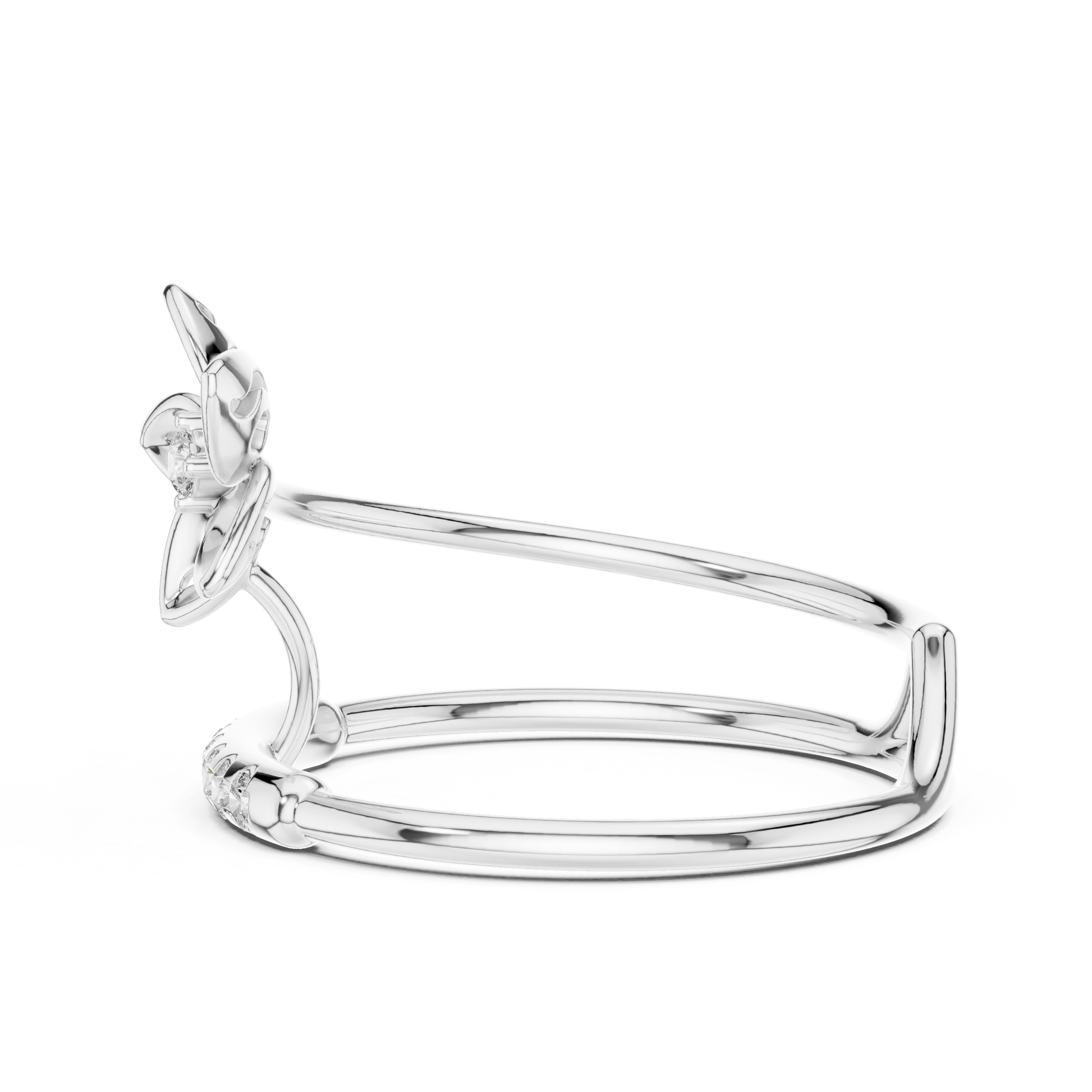 This exquisite creation from Ivevar Luxury blends nature-inspired elegance with modern finesse. Featuring a delicately sculpted floral motif crowned with a shimmering diamond and paired with a sleek dual-band design accented with brilliant pave stones, this ring radiates timeless sophistication. Crafted in polished gold, its double-band silhouette gives the illusion of a graceful stacked set, making it a standout piece for everyday elegance or special celebrations.
