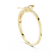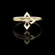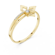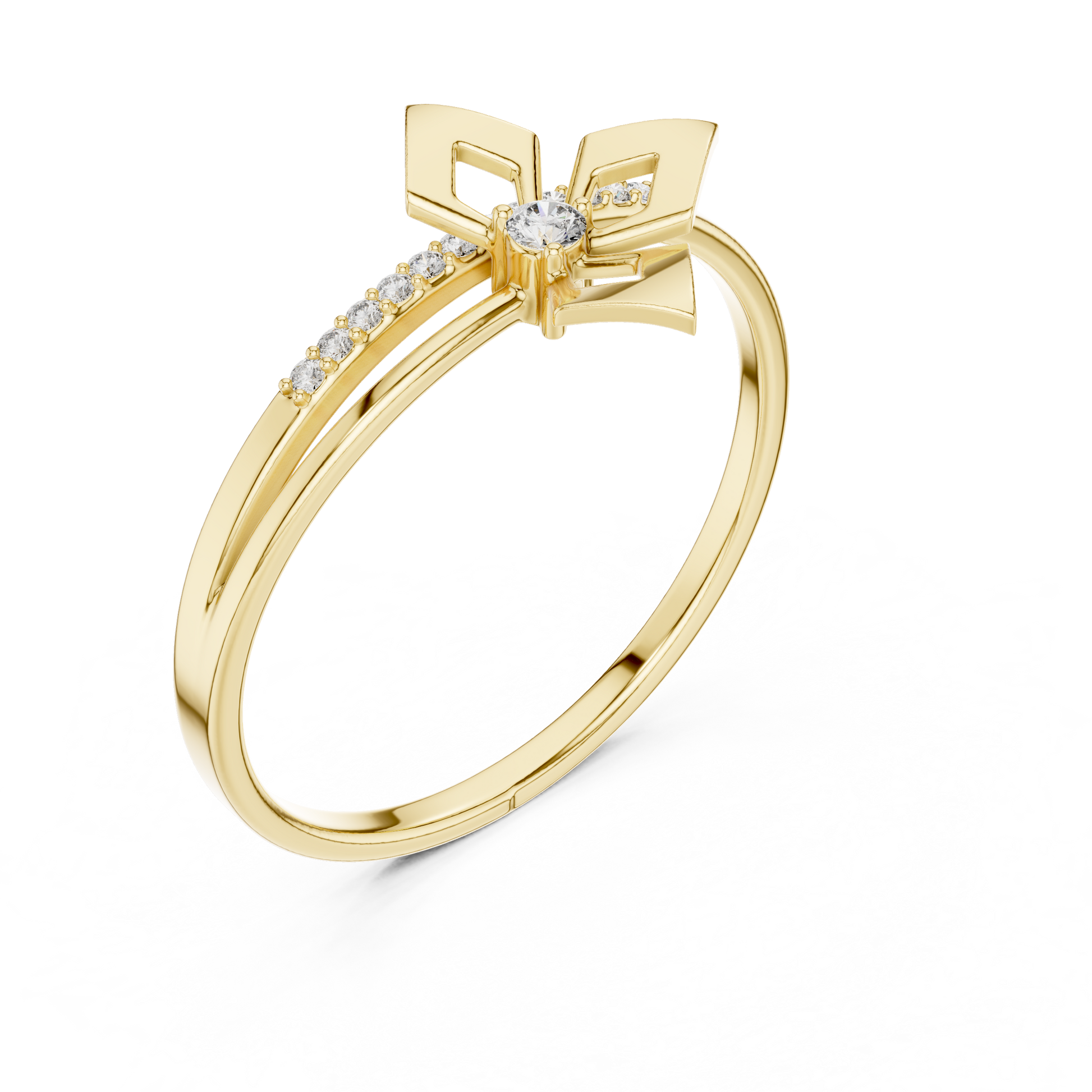 This exquisite ring showcases a delicate geometric floral motif crafted centered around a brilliant round-cut diamond that radiates elegance. The split band design is adorned with a row of sparkling accent diamonds, adding refined brilliance and depth. The unique combination of openwork diamond-shaped petals and polished gold gives this piece a modern yet timeless charm. Perfect for those who appreciate artful craftsmanship, sophisticated style, and distinctive jewelry design.