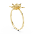 This beautiful ring showcases a playful yet elegant dual-flower design crafted in lustrous. The larger flower features smooth, sculpted petals centered by a brilliant round diamond, while the smaller bloom above sparkles with a cluster of pavé-set diamonds. Together, they create a charming composition that blends whimsical floral artistry with luxurious craftsmanship. Perfect for those who adore feminine, nature-inspired, and sparkling jewelry.