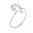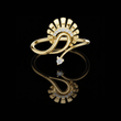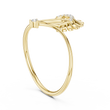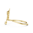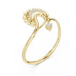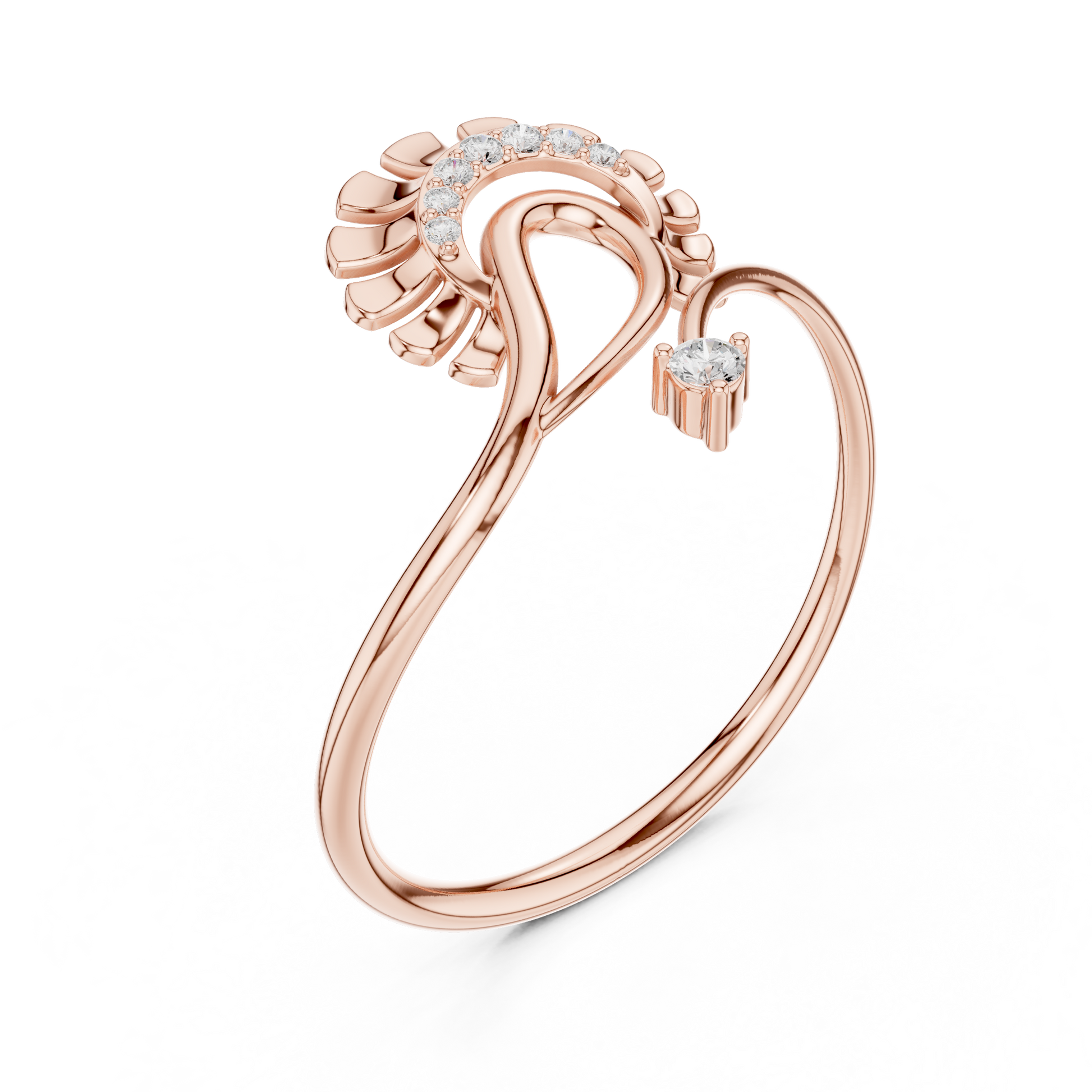This ring features a fluid infinity-inspired band crafted in polished creating a sense of continuous motion and elegance. Rising above the center is a sunburst-style crest, formed by smooth gold rays and highlighted with a semi-arc of sparkling round diamonds. One end of the band extends gracefully outward, ending in a single brilliant-cut diamond, adding balance and a touch of refined brilliance.