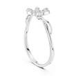 This elegant ring features a delicate flower-inspired design crafted in lustrous. Each petal is set with brilliant round diamonds, creating a radiant floral motif that symbolizes beauty, growth, and grace. The gently twisting band adds a touch of organic sophistication, making this piece perfect for everyday elegance or special occasions.