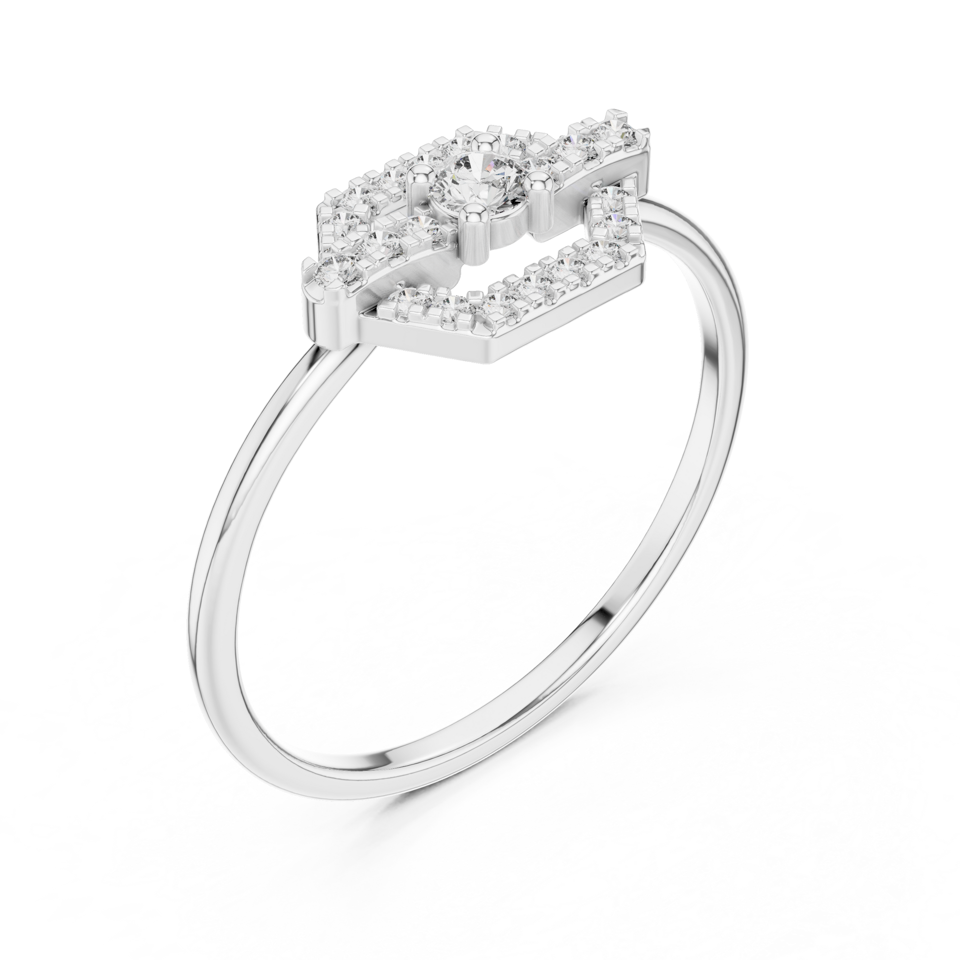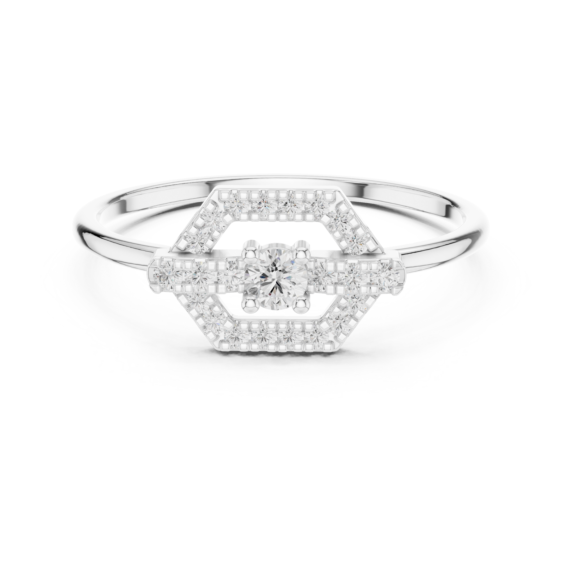 0.065 CT Geometric Round Lab Diamond Ring with Pave Frame With Structured Crossbar Design