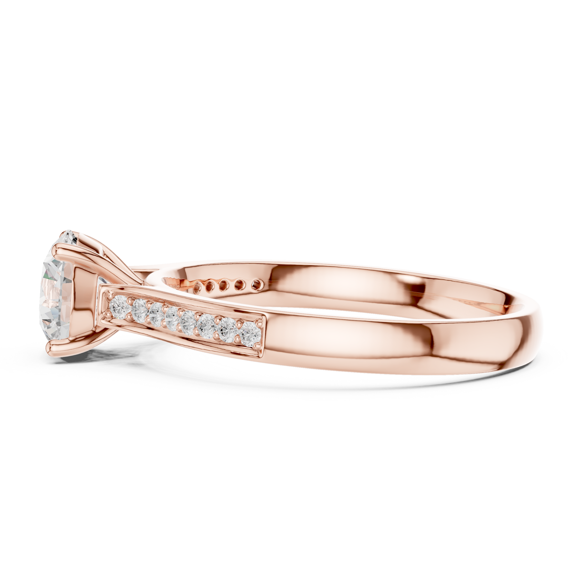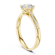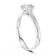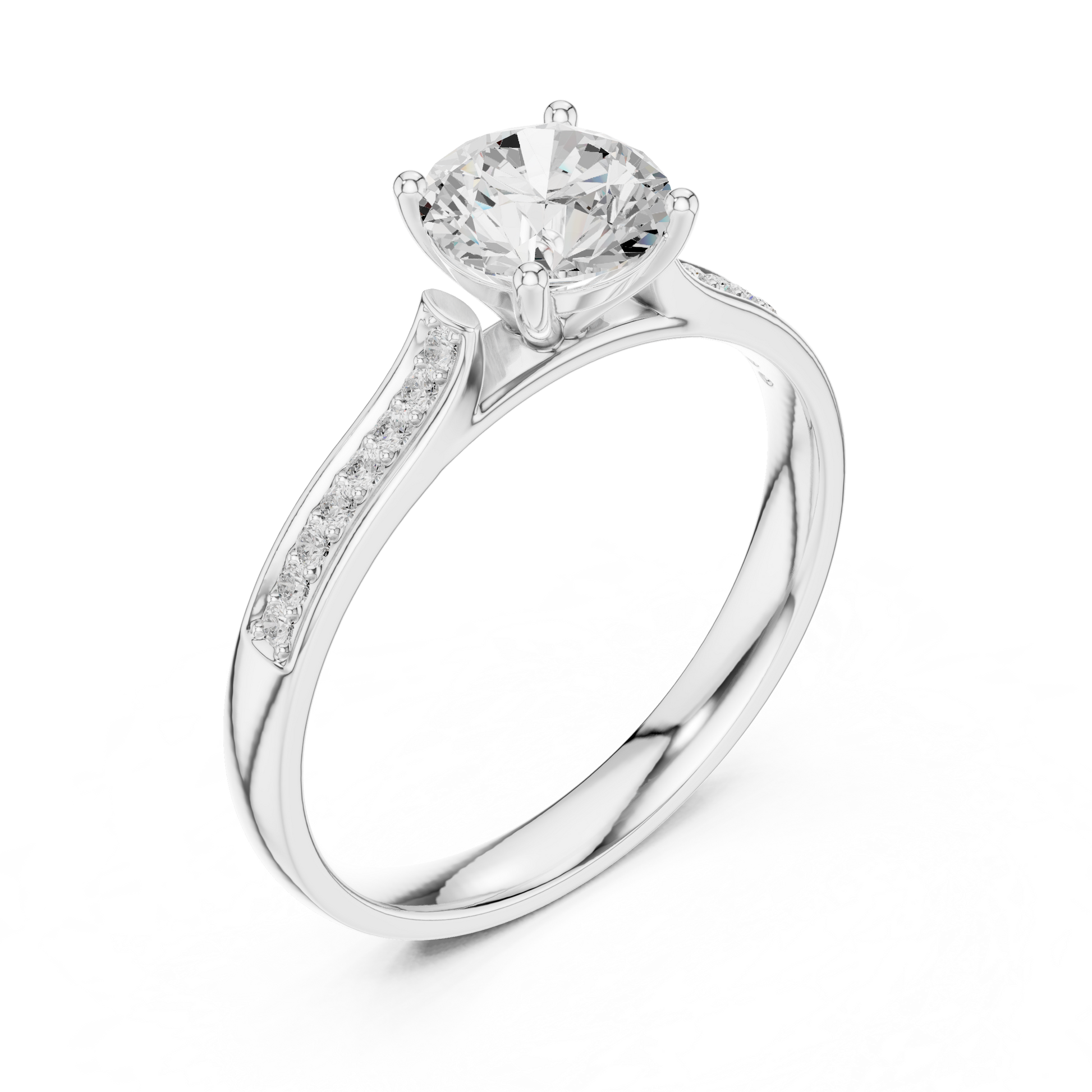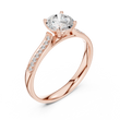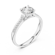 Celebrate unforgettable moments with this stunning engagement ring, crafted in radiant. At its heart lies a breathtaking round-cut center diamond, secured by elegant four-prong settings that highlight its brilliance and fire. The band is adorned with pavé-set diamonds, adding a continuous shimmer that enhances the ring’s timeless beauty.