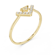 This modern gold ring features a striking double-chevron silhouette adorned with brilliant pave set diamonds, forming a refined V-shaped contour with a distinctive triangular accent at the center. The layered geometry creates depth and symmetry, allowing light to reflect beautifully from every angle while maintaining a sleek, minimalist profile. Finished with a smooth high-polish band, this ring is designed to elevate both standalone wear and stacked bridal styling. A sophisticated blend of architectural design and contemporary elegance, perfect for those who appreciate modern luxury with a bold yet delicate edge.