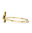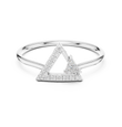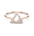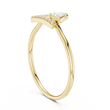 This contemporary gold ring showcases a bold open triangle silhouette accented with pave set round diamonds and a striking trillion-cut diamond detail. The sharp geometric lines create a modern architectural look, while the polished gold band adds balance and elegance. Designed for those who love clean shapes and statement minimalism, this ring is perfect for stacking, modern bridal styling, or everyday luxury with an artistic twist.