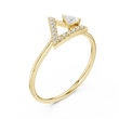 This contemporary gold ring showcases a bold open triangle silhouette accented with pave set round diamonds and a striking trillion-cut diamond detail. The sharp geometric lines create a modern architectural look, while the polished gold band adds balance and elegance. Designed for those who love clean shapes and statement minimalism, this ring is perfect for stacking, modern bridal styling, or everyday luxury with an artistic twist.