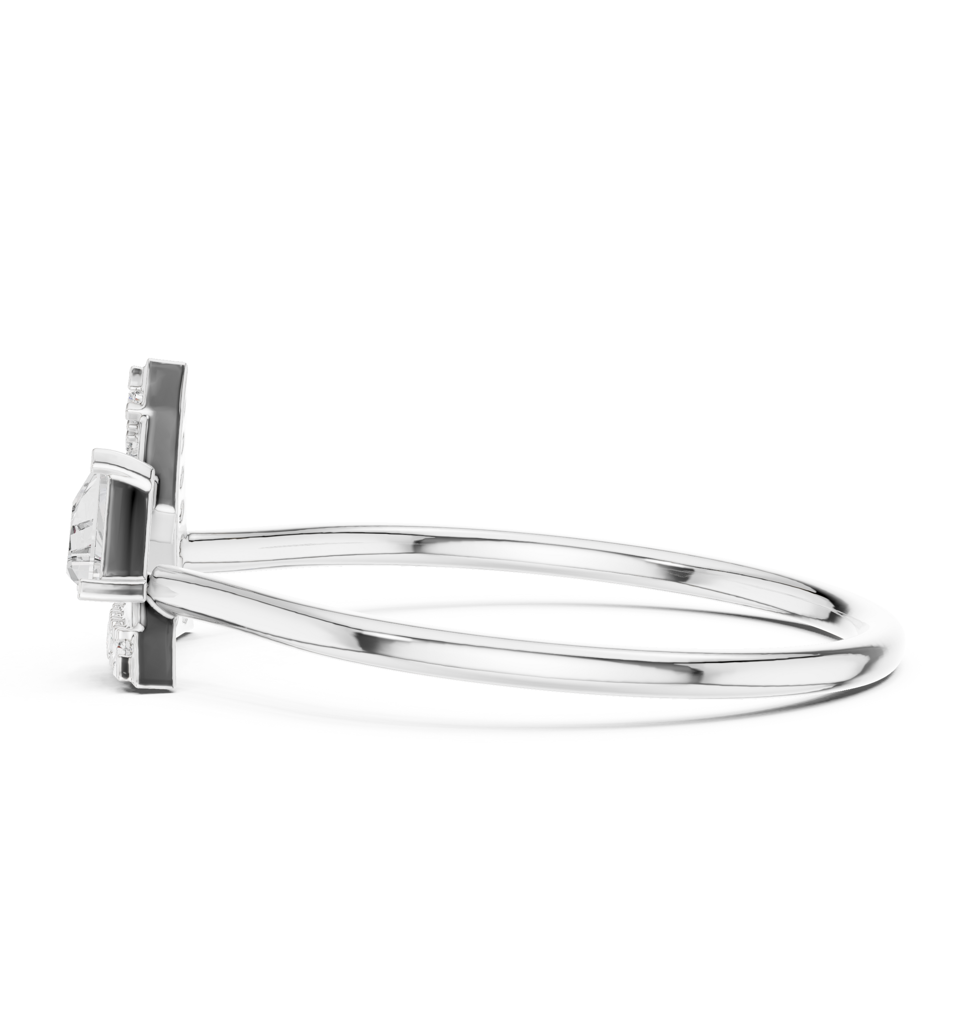 0.10 CT Open Triangle Ring with Pave Set Moissanite Diamond and Geometric Trillion Accent Design