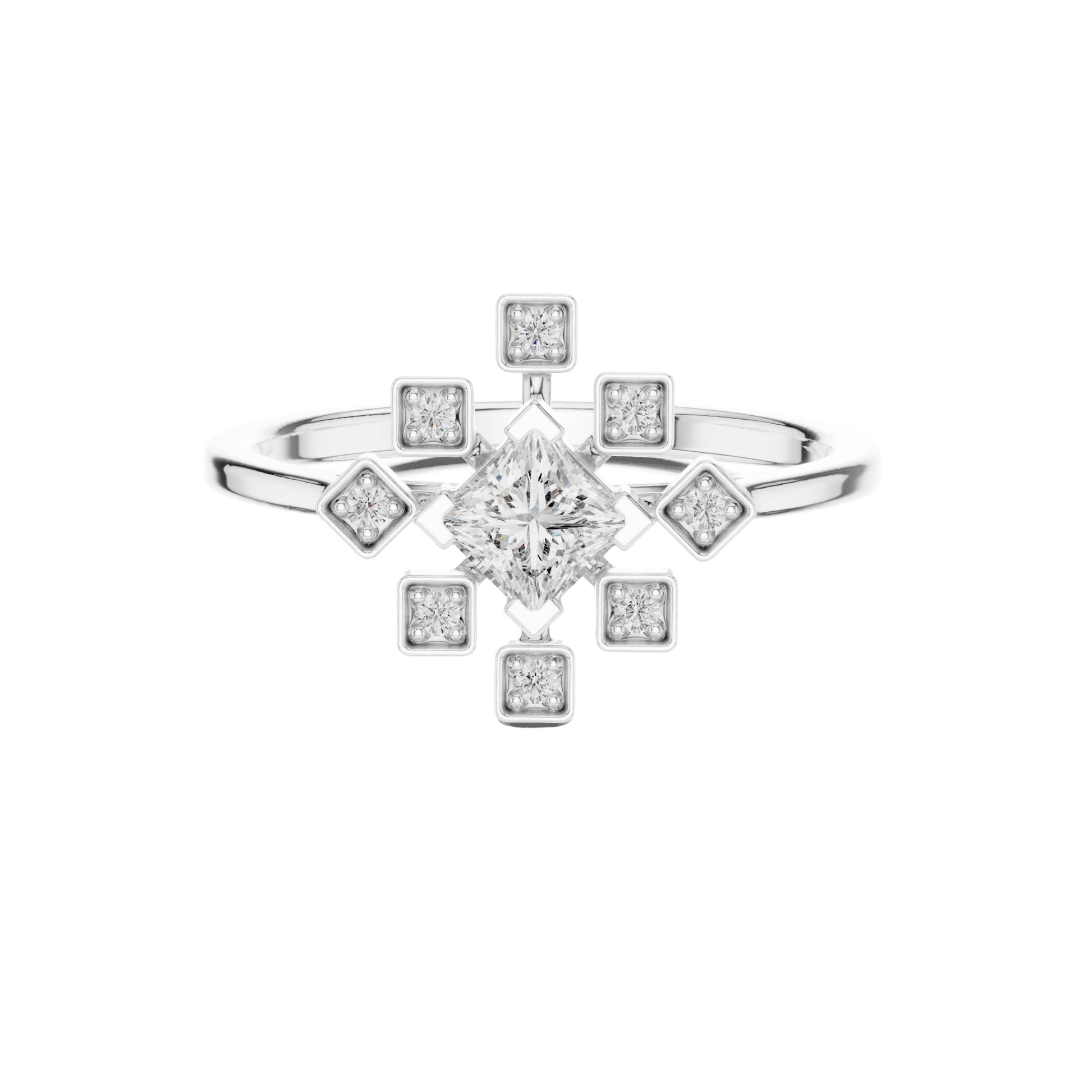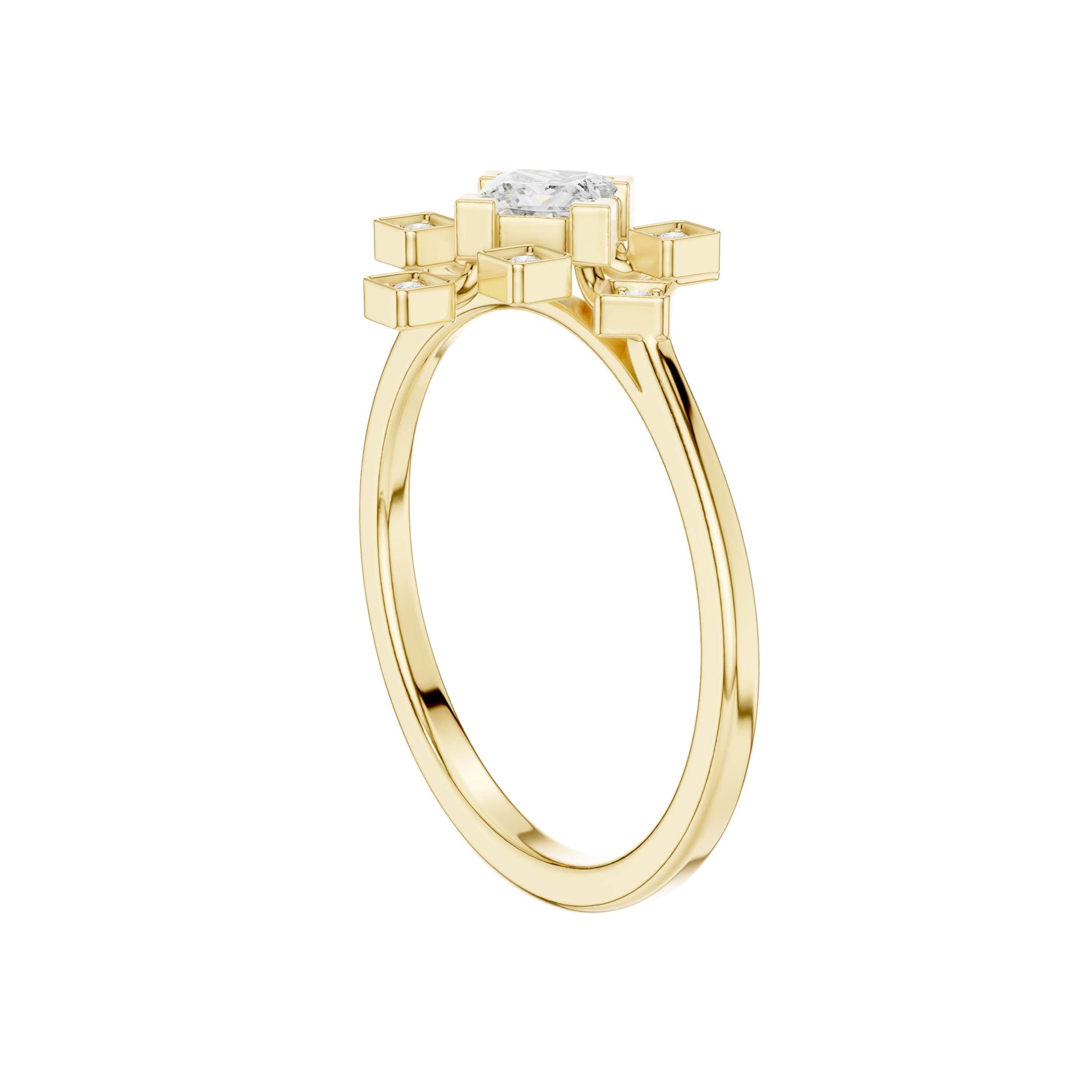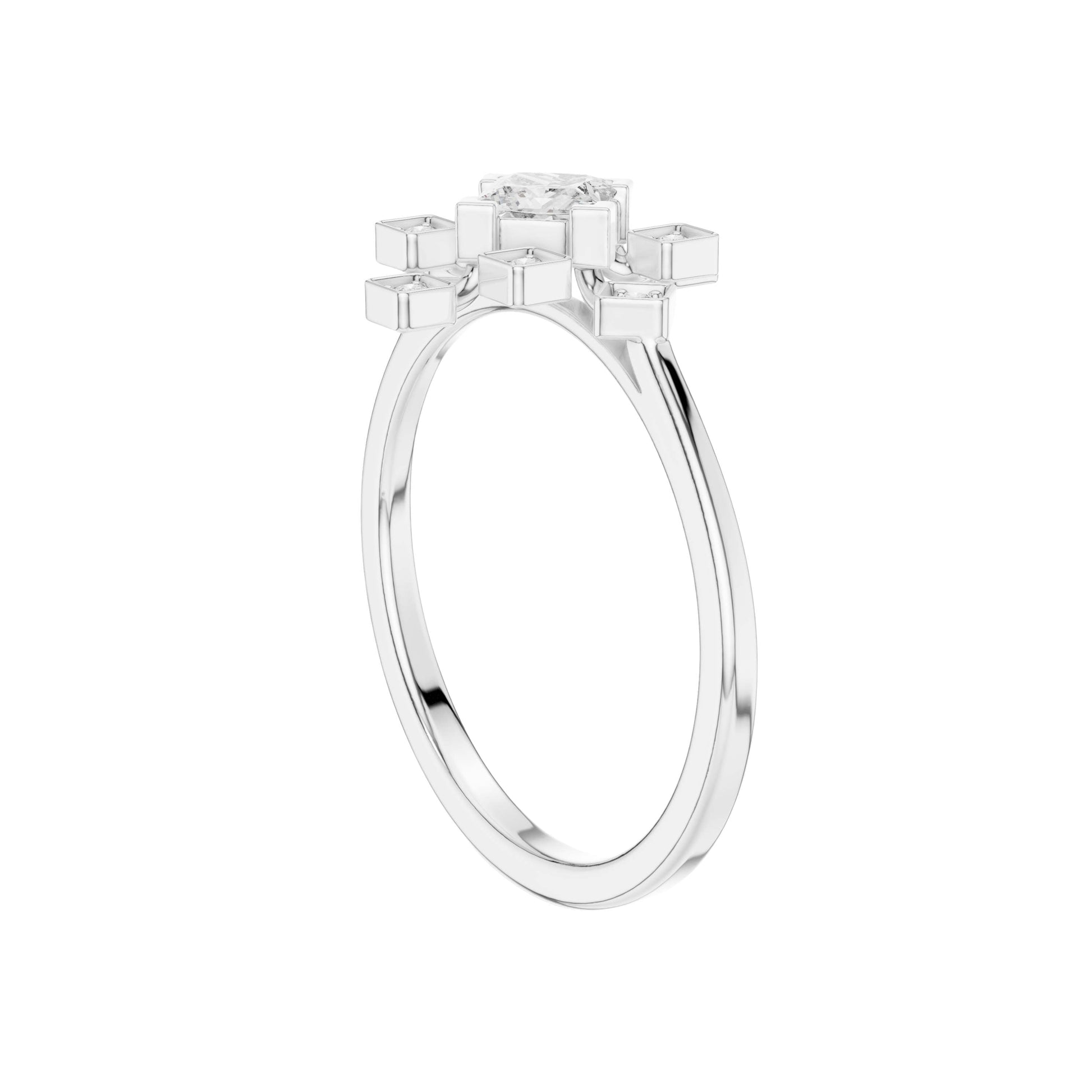 0.22 CT Unique Princess Cut Lab Grown Diamond Starburst Ring with Bezel Set Accent Diamonds