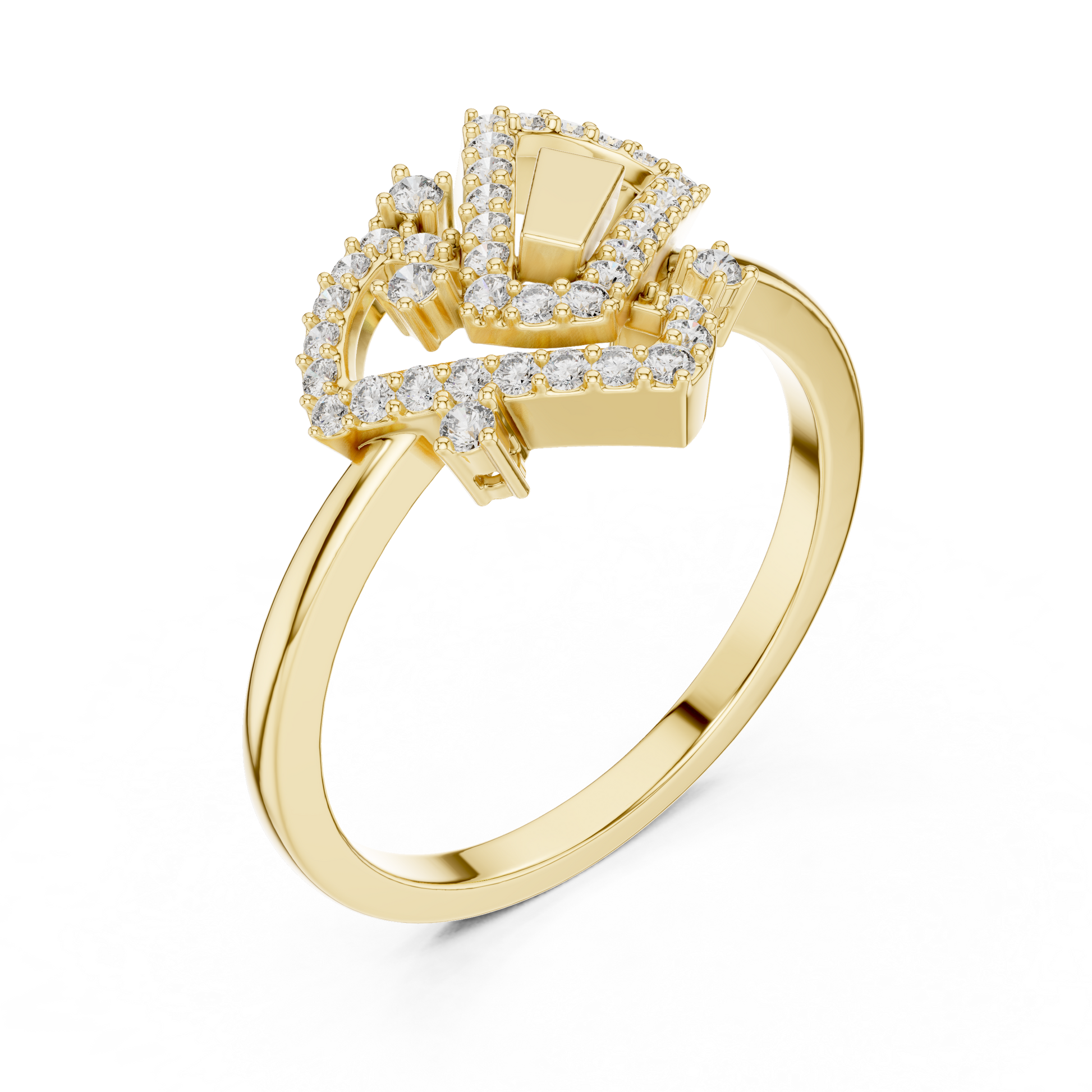 Celebrate connection and elegance with this luxury gold diamond ring, crafted in a striking interlocked heart design. The overlapping heart shapes are highlighted with brilliant pave-set diamonds, symbolizing love, unity, and timeless bonding. A polished gold centerpiece adds depth and contrast, creating a bold yet romantic silhouette. Designed for modern luxury lovers, this ring blends emotional meaning with contemporary design,