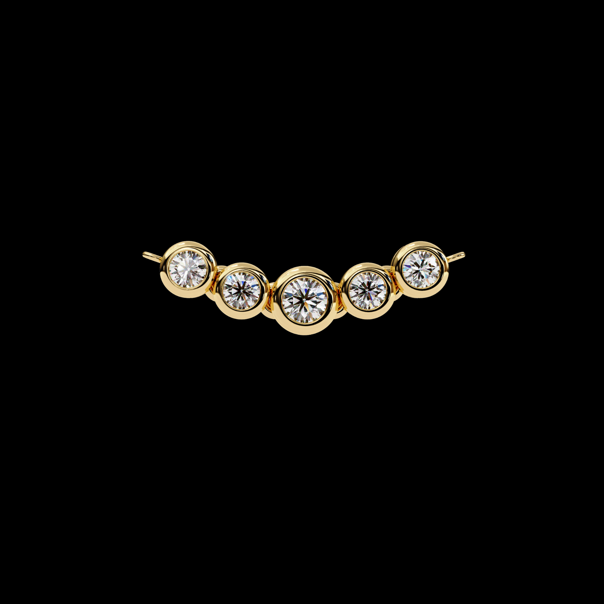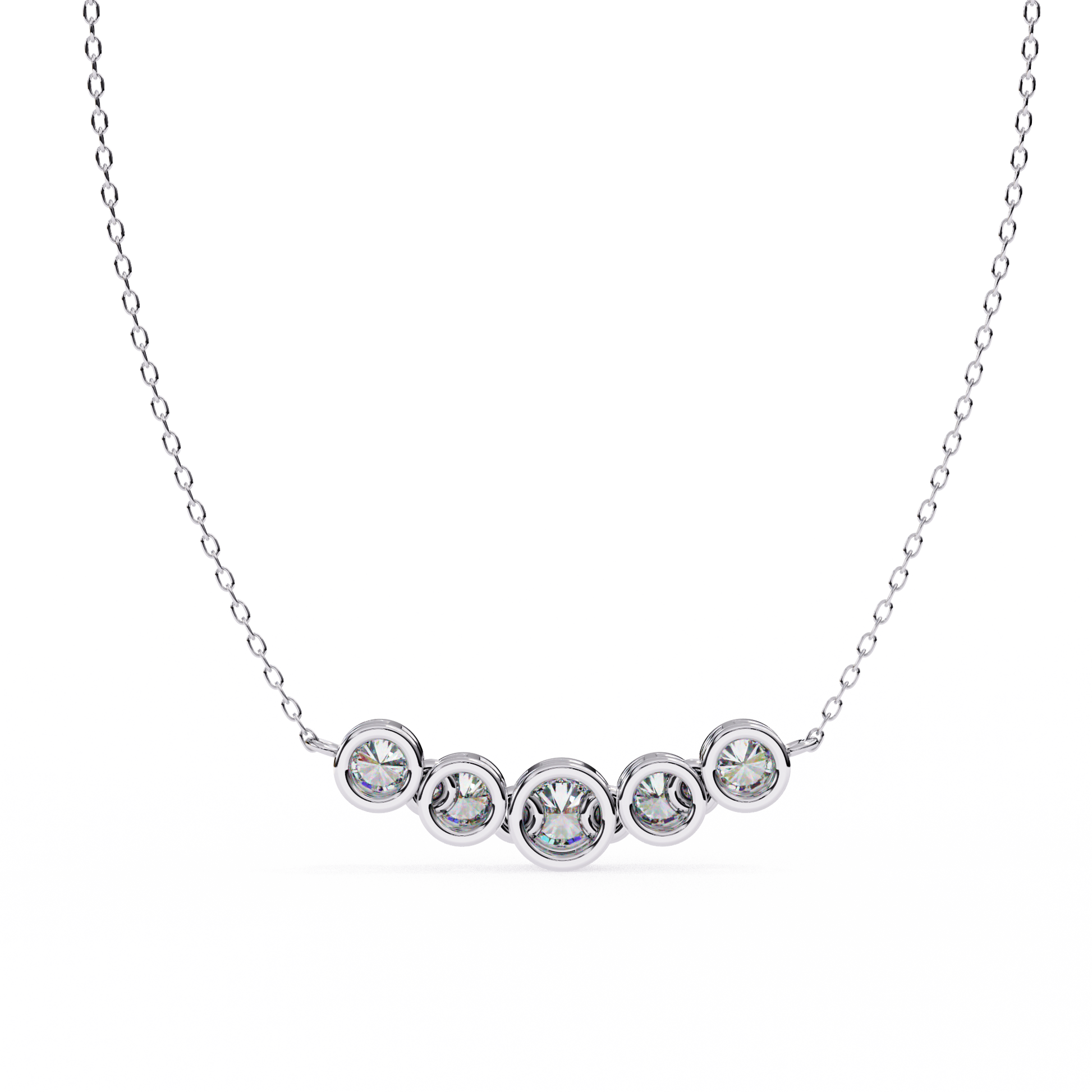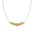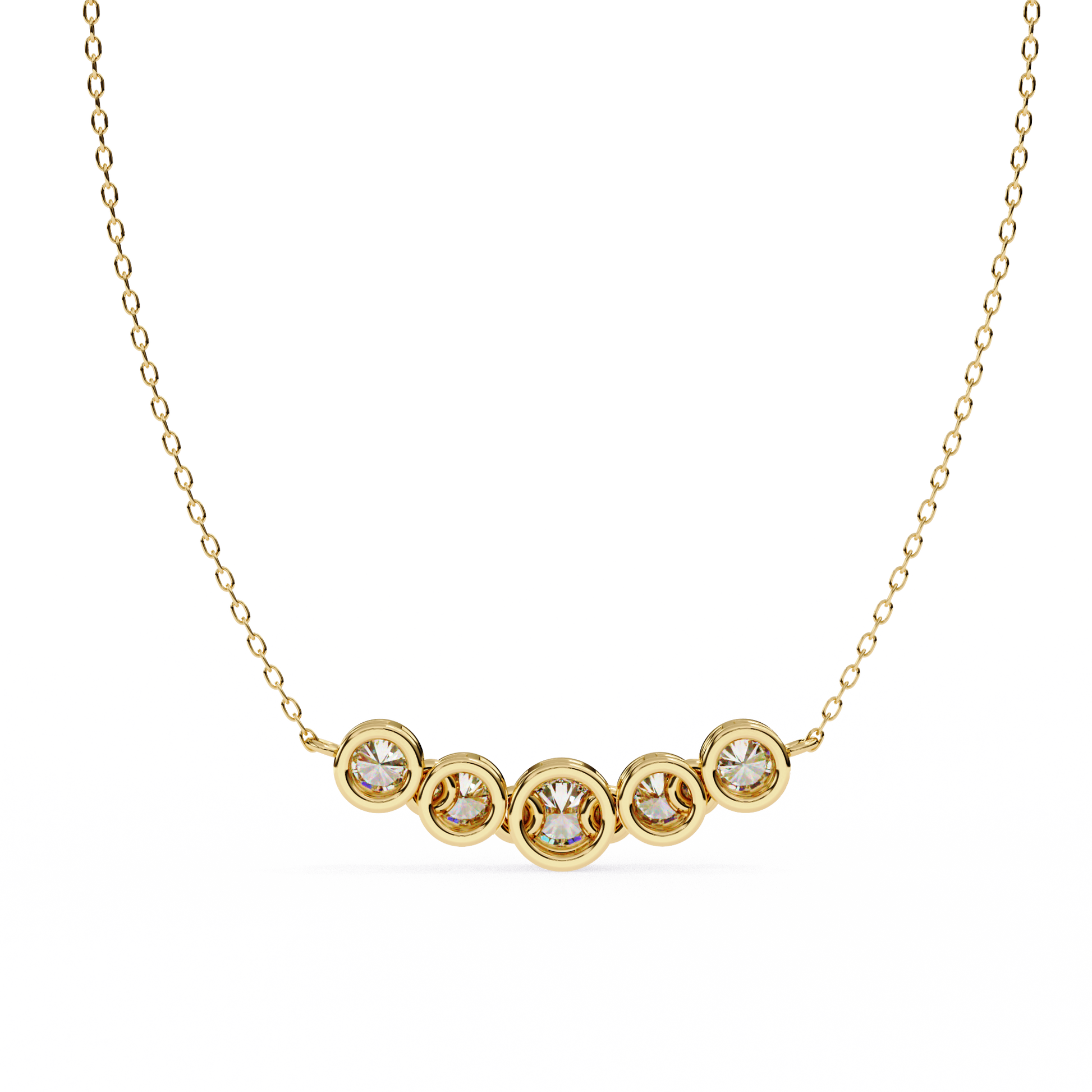 This elegant pendant features five brilliant round diamonds set in smooth, polished gold bezels, arranged in a graceful curved bar that adds subtle sparkle and refined symmetry to the neckline. Suspended from a delicate matching gold chain, the design blends modern minimalism with timeless luxury, making it a versatile piece that transitions effortlessly from everyday wear to special occasions by Ivevar.