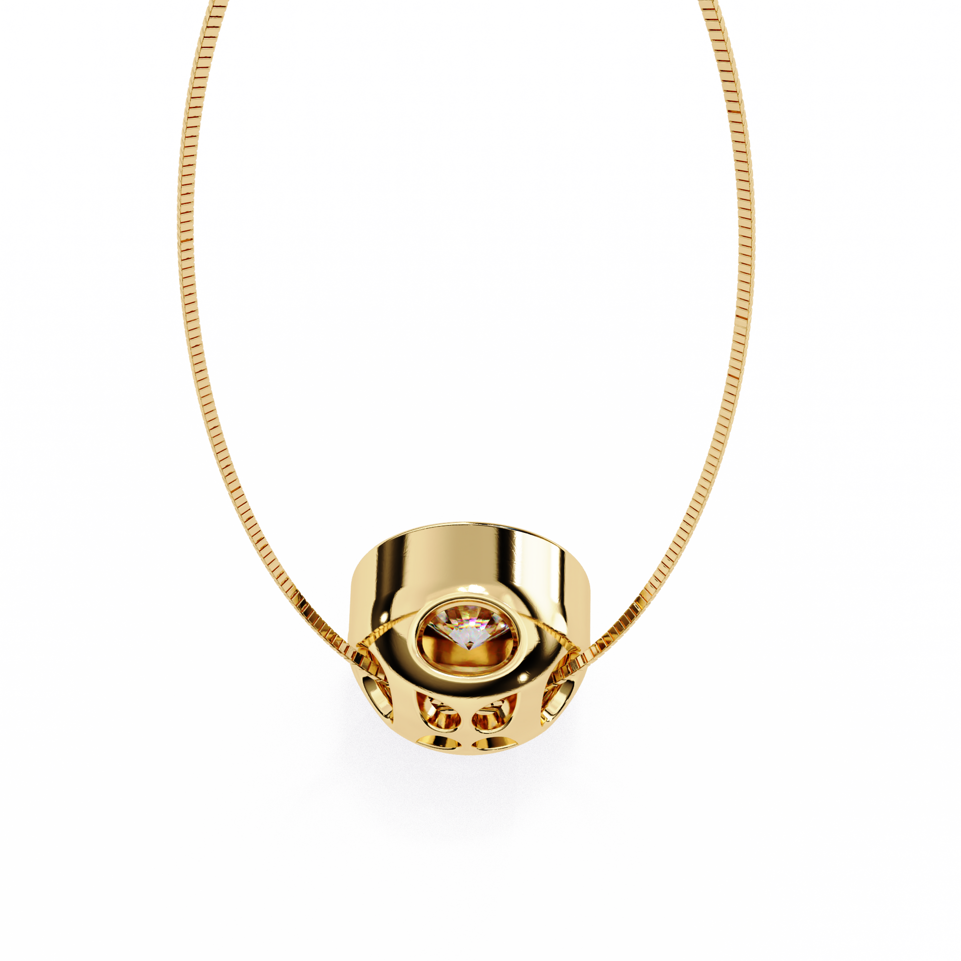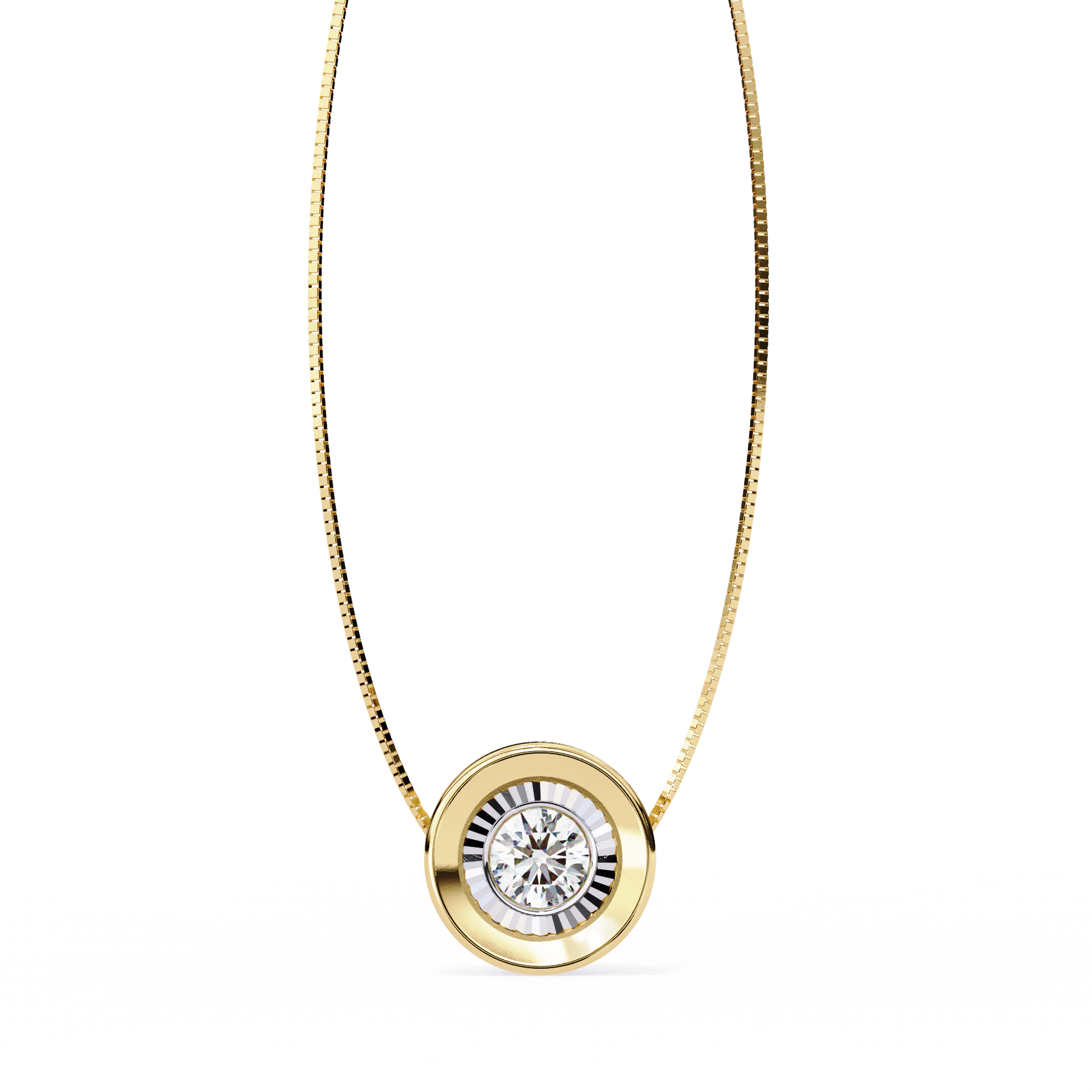 This elegant pendant features a Brilliant Round Cut Diamond set in a sleek bezel of polished gold, creating a timeless balance of radiance and sophistication. The diamond’s exquisite sparkle is accentuated by the smooth, reflective gold border, enhancing its luminosity from every angle. Designed by Ivevar Luxury, this piece embodies refined craftsmanship and understated elegance—perfect for those who appreciate classic luxury with a modern touch by Ivevar.