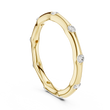 sleek and modern gold band features a unique, softly undulating design accented by evenly spaced round diamonds set flush into the metal. The subtle sparkle of the diamonds combined with the polished gold creates a refined and sophisticated look that works perfectly as a standalone statement or paired with other rings for a layered effect. Its minimalist yet elegant style makes it ideal for everyday wear or special occasions.