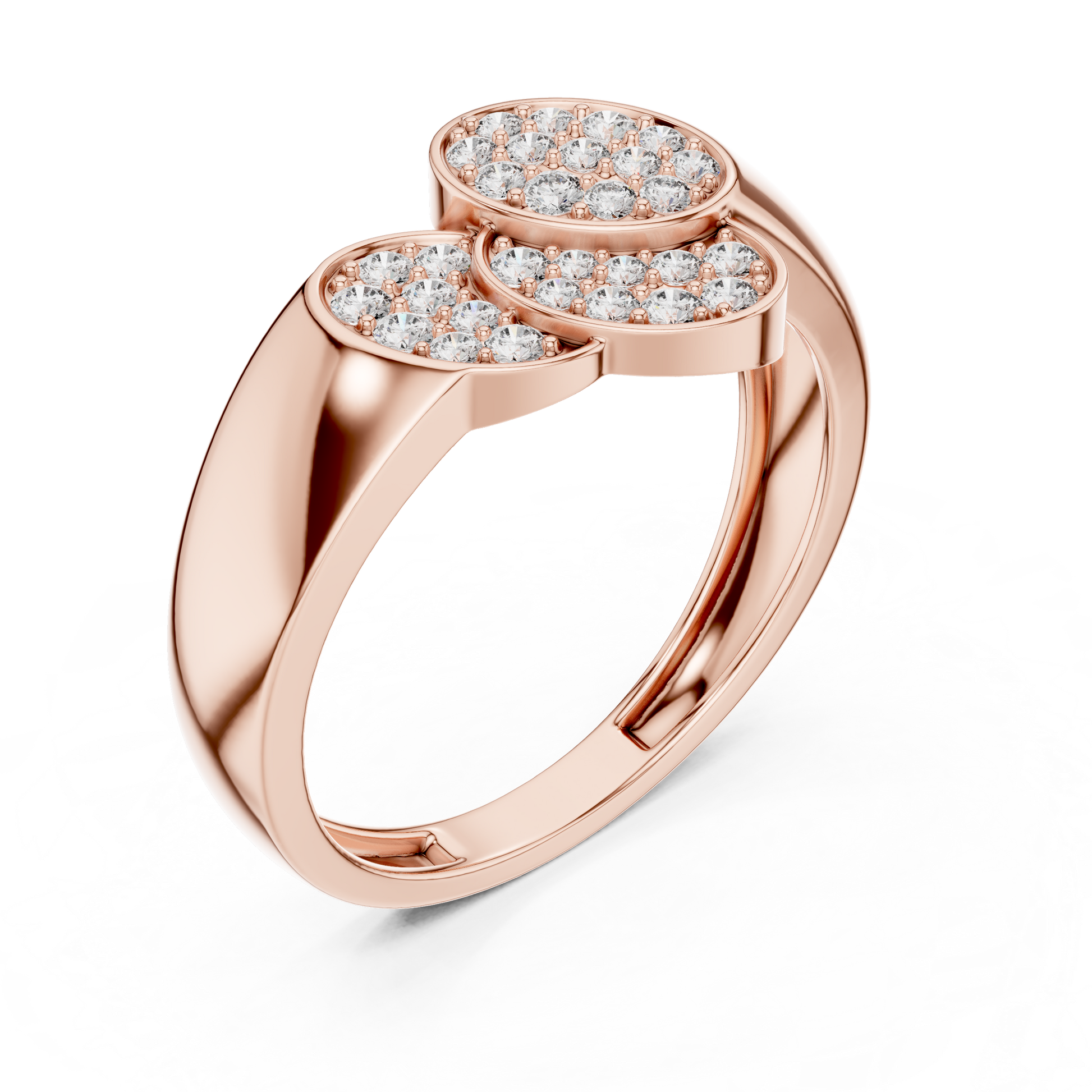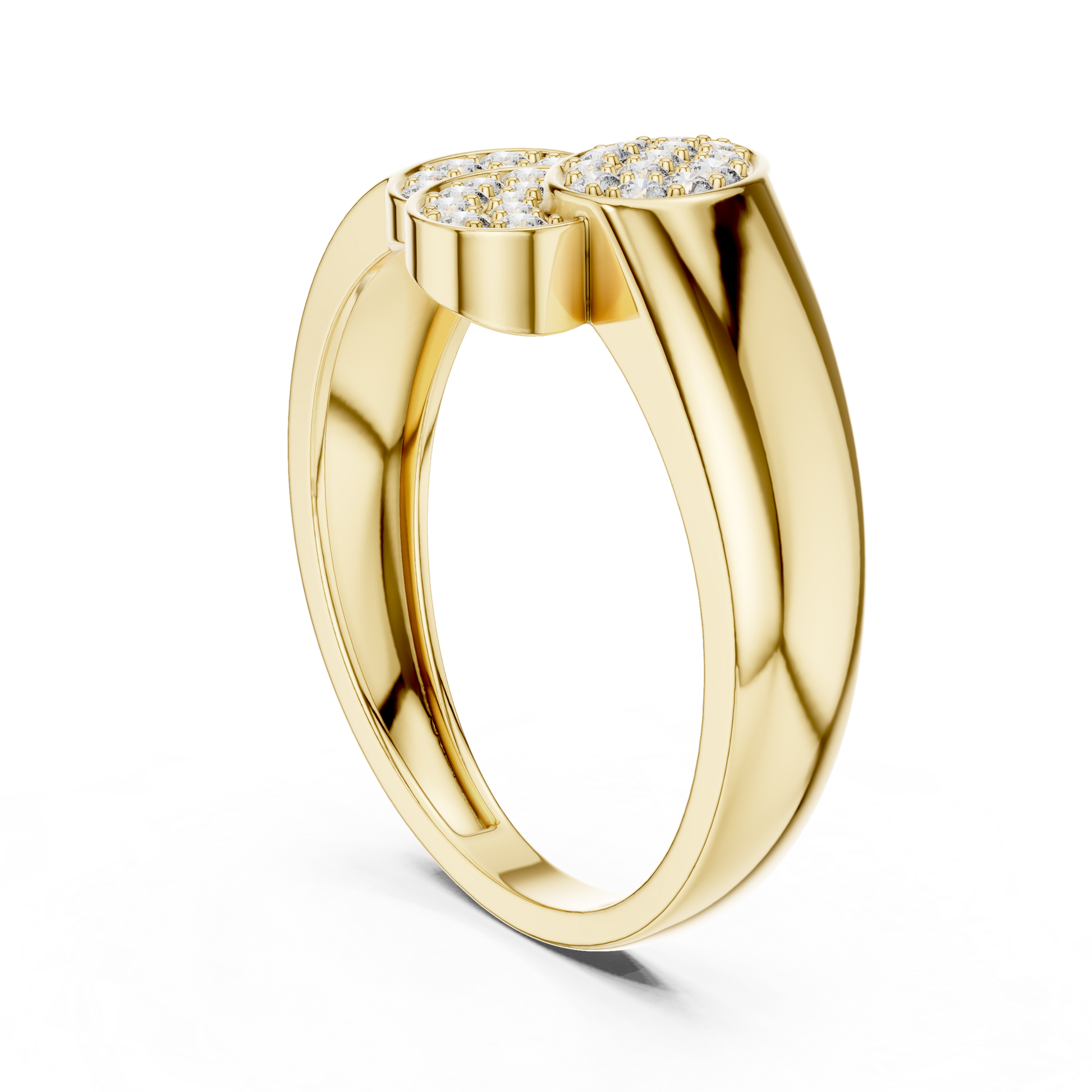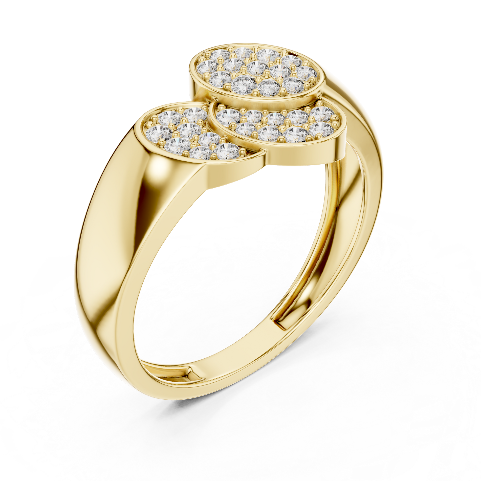 This elegant creation from IVEVAR LUXURY showcases a refined triple oval diamond cluster design crafted in rich gold. Three overlapping oval-shaped tops are beautifully set with shimmering pave diamonds, creating a graceful flow and exceptional sparkle from every angle. The smooth, wide gold band is polished to a mirror-like finish, offering both visual strength and everyday comfort.
