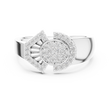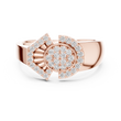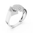This striking statement ring from IVEVAR LUXURY features a radiant round diamond cluster center, beautifully surrounded by a shimmering pave for maximum brilliance. The design is elevated with a bold geometric split accent on one side, creating a modern asymmetrical silhouette that stands out from every angle. the wide high-polish band provides a strong, luxurious presence while ensuring a smooth and comfortable fit.