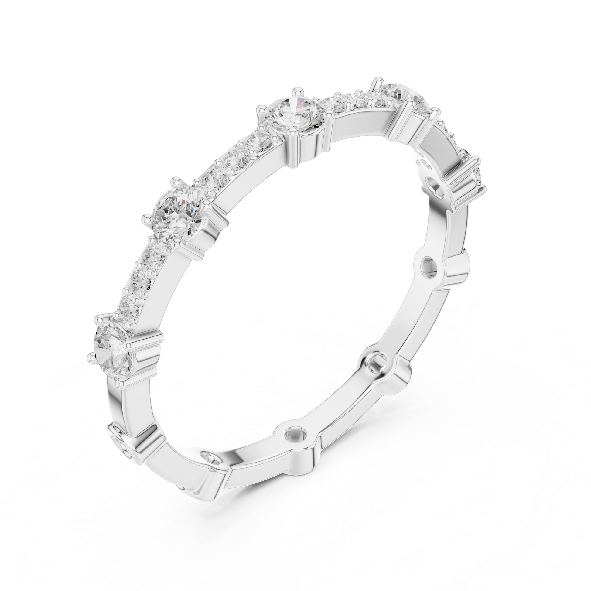 this stunning eternity band showcases a continuous row of round brilliant-cut diamonds set in radiant high-polish gold. The refined open-gallery design enhances brilliance while ensuring comfort for everyday wear. Each diamond is expertly secured to reflect light from every angle, creating a timeless sparkle that symbolizes everlasting love. Designed for modern elegance, this ring is perfect as a wedding band, anniversary ring, or a luxurious stacking piece.