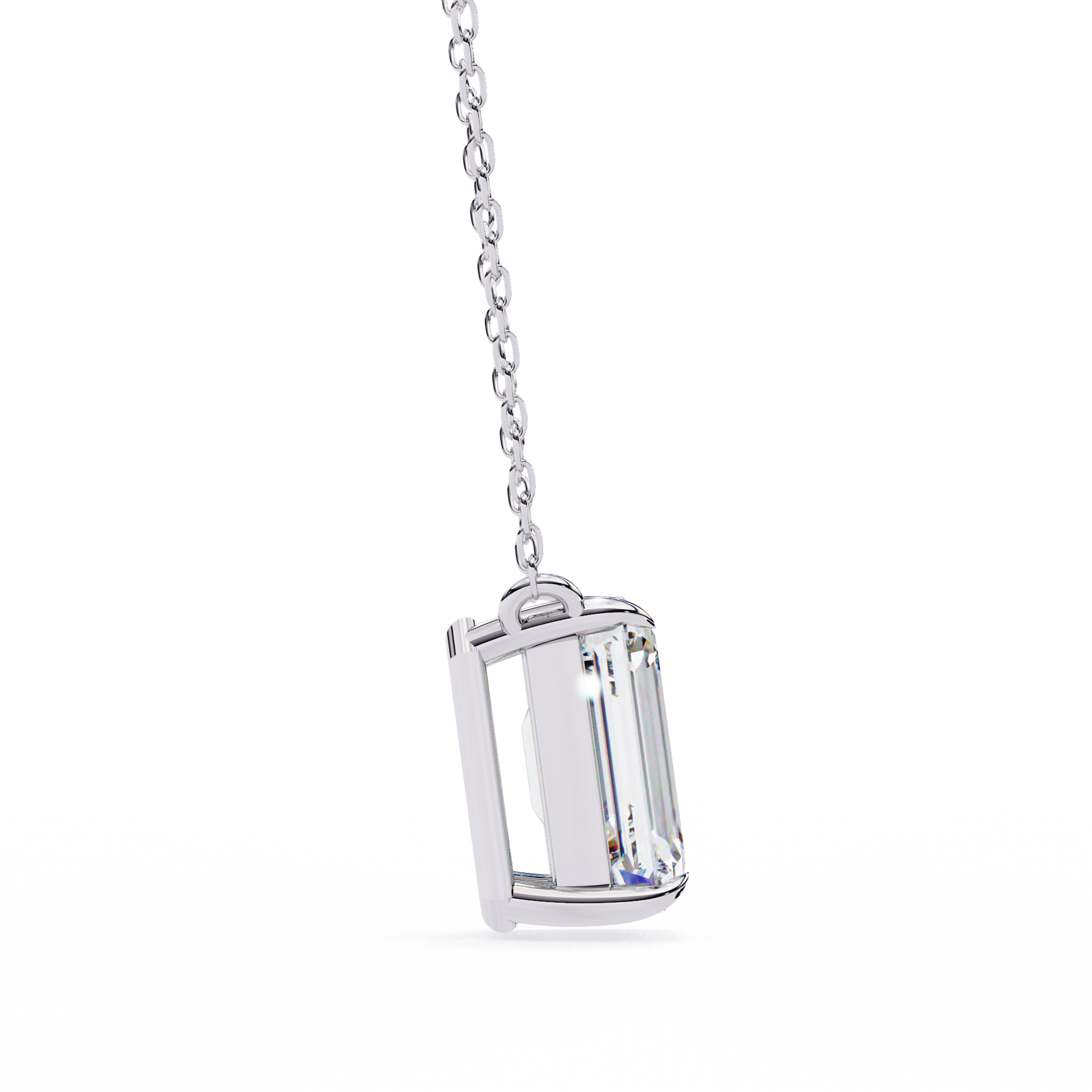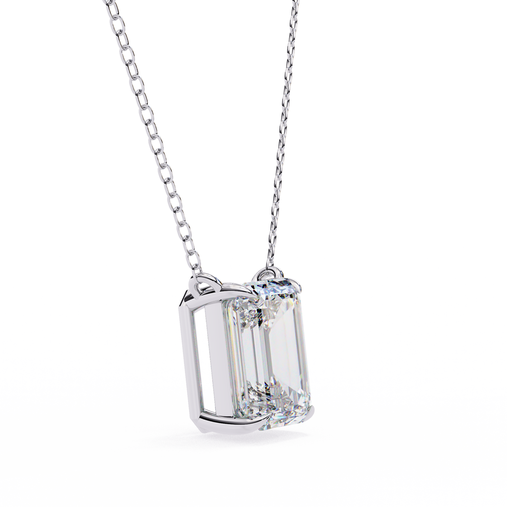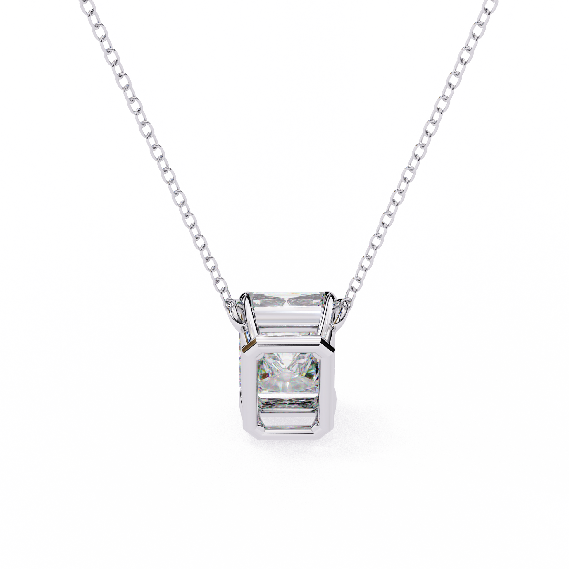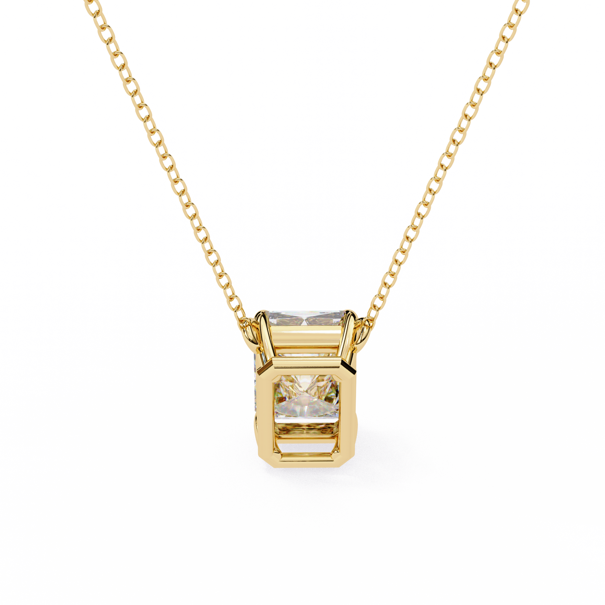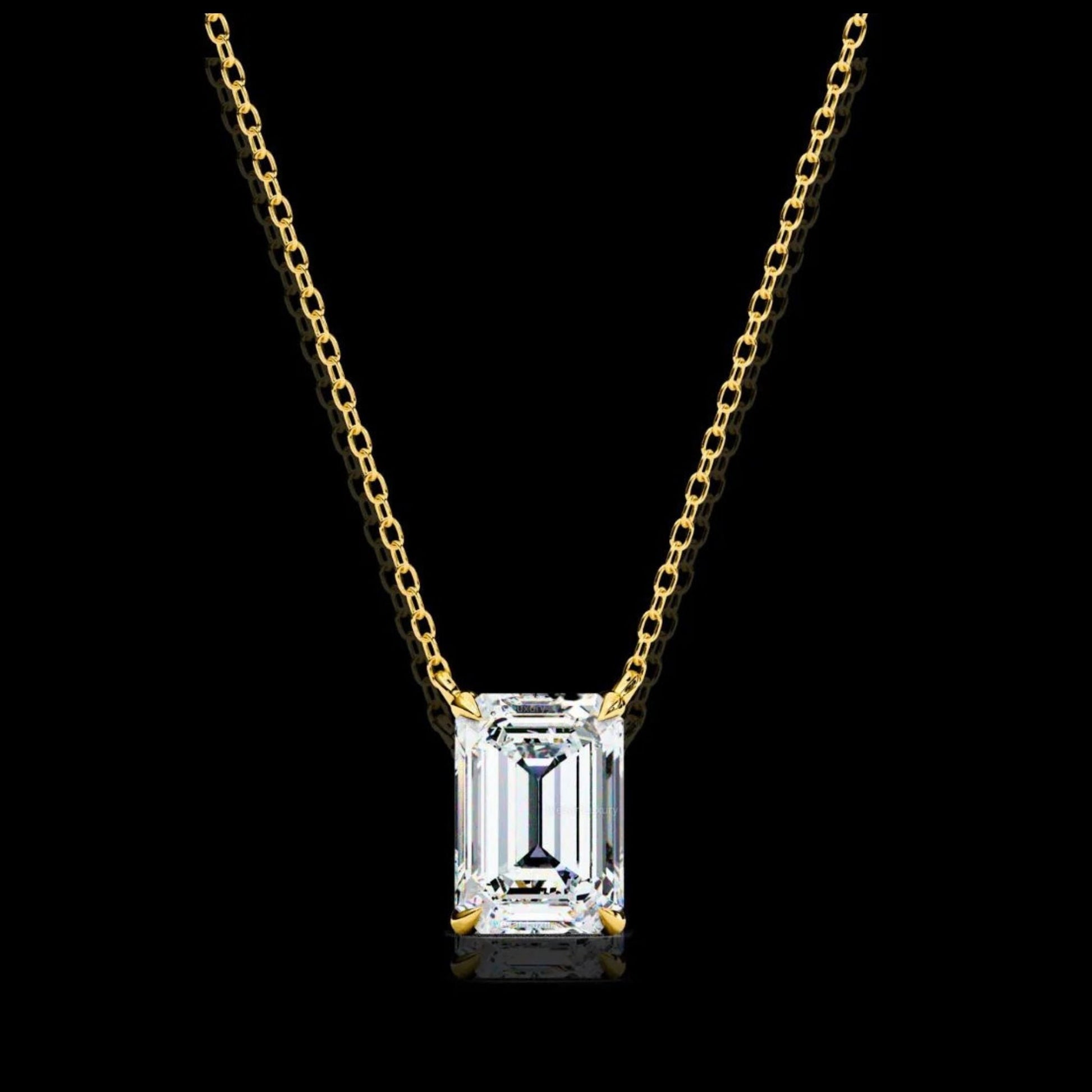 This necklace features a striking emerald-cut gemstone that exudes refined elegance, set in a sleek, minimalist gold setting that enhances its crisp lines and radiant clarity. Suspended from a delicate gold chain, the pendant captures light beautifully, creating a sophisticated sparkle that stands out without being overpowering. Its clean, modern design makes it perfect for both everyday wear and special occasions, offering a timeless touch of luxury that elevates any outfit by Ivevar.