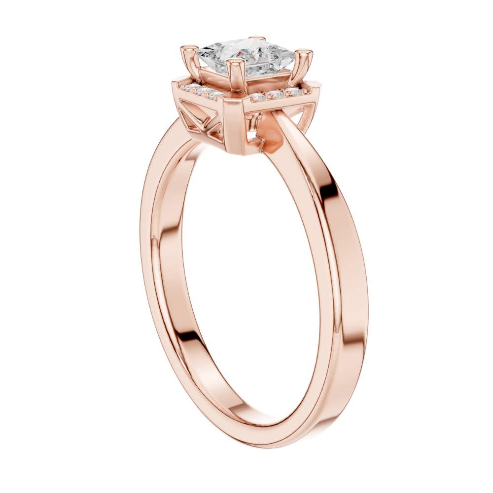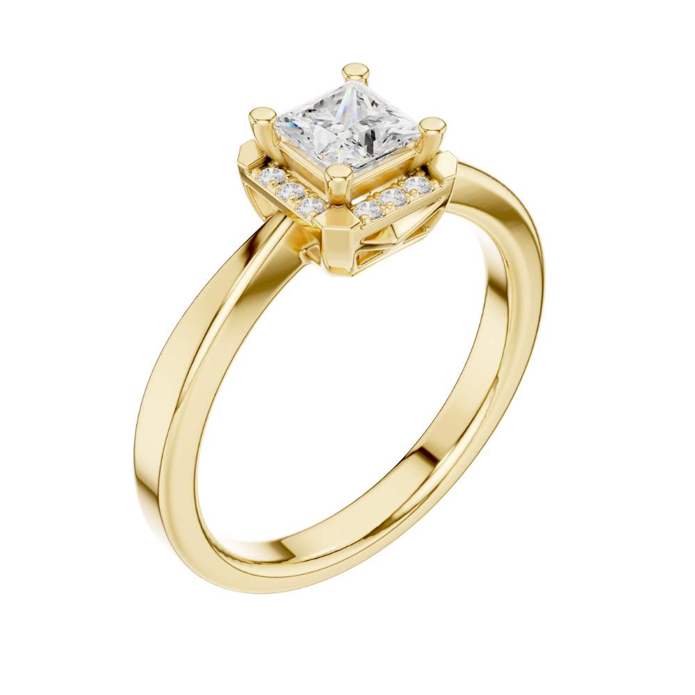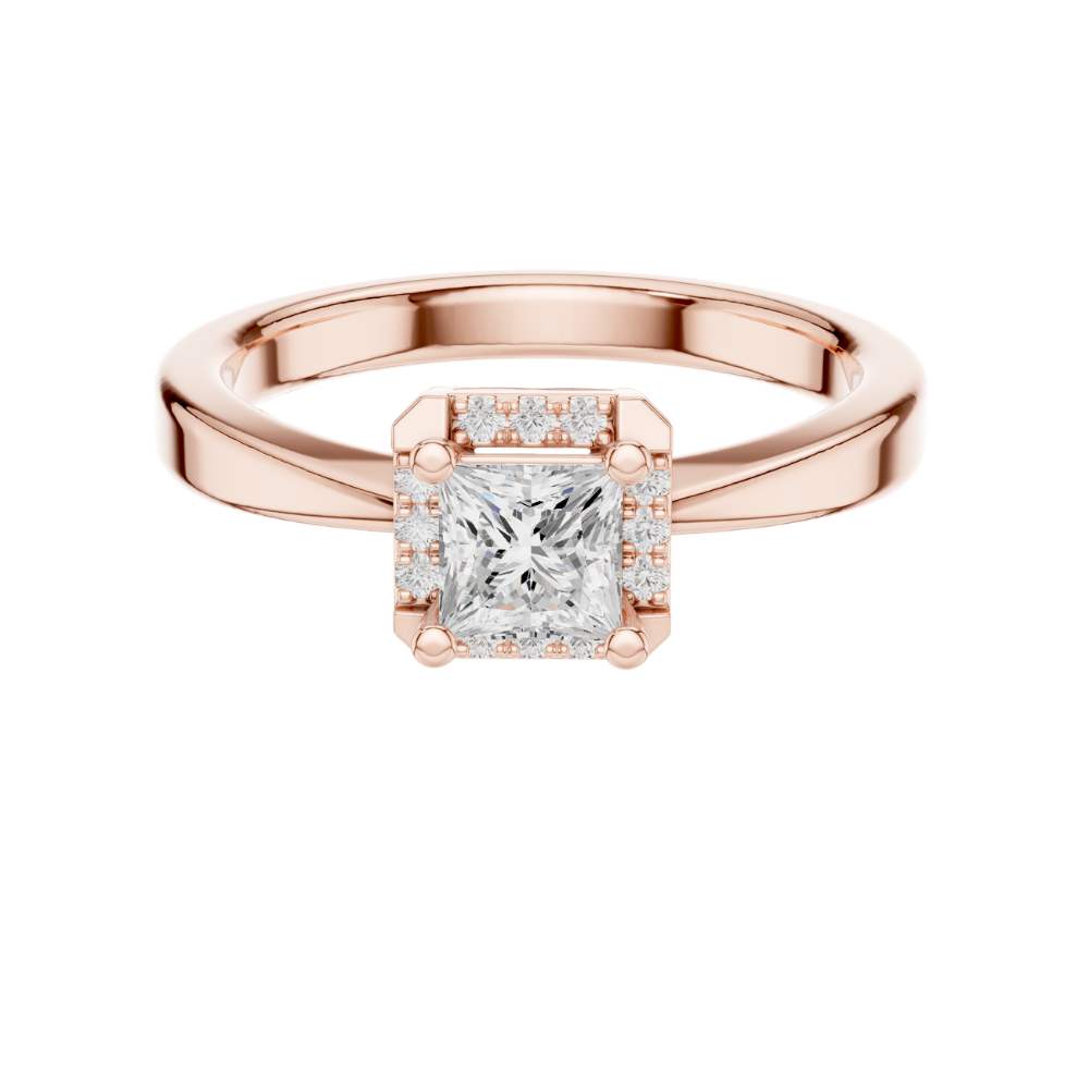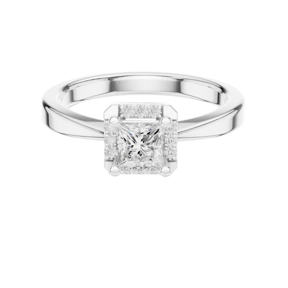 This exquisite engagement ring showcases a brilliant princess-cut center diamond surrounded by a dazzling square halo of round diamonds, all set in warm, polished gold. The structured four-prong setting enhances the geometric elegance of the square halo, adding depth and radiance from every angle. With its perfect balance of modern design and timeless sophistication, this ring offers exceptional sparkle and refined beauty—an unforgettable choice for a meaningful proposal by Ivevar.