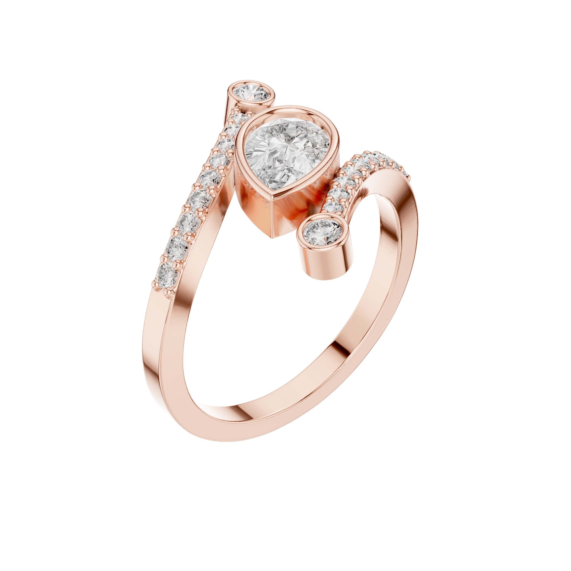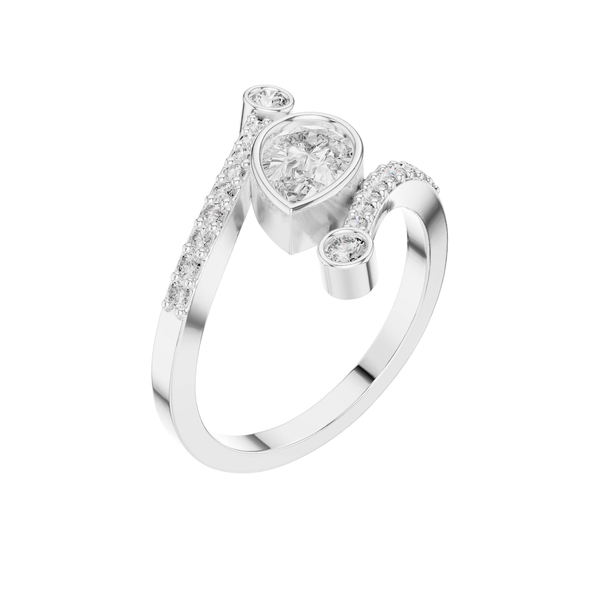 This captivating gold bypass ring features a luminous pear-shaped center diamond cradled in a sleek bezel setting, symbolizing elegance in motion. The gracefully crossing band is adorned with pave-set diamonds that lead the eye toward two bezel-set round diamonds at each open end, adding balance and brilliance. Modern yet romantic, this sculptural design blends fluid curves with refined sparkle, making it an unforgettable statement ring perfect for engagements, anniversaries, or a bold expression of personal style by Ivevar.