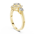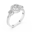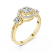 The Octavia Halo Diamond Ring is a striking blend of architectural elegance and timeless luxury. At its heart lies a radiant round-cut diamond, framed by an octagonal halo of shimmering pavé diamonds that adds depth, dimension, and exceptional brilliance. Flanked by beautifully matched side diamonds, the design creates a balanced silhouette that feels both bold and refined. The high band enhances warmth and sophistication while ensuring lasting comfort and durability.