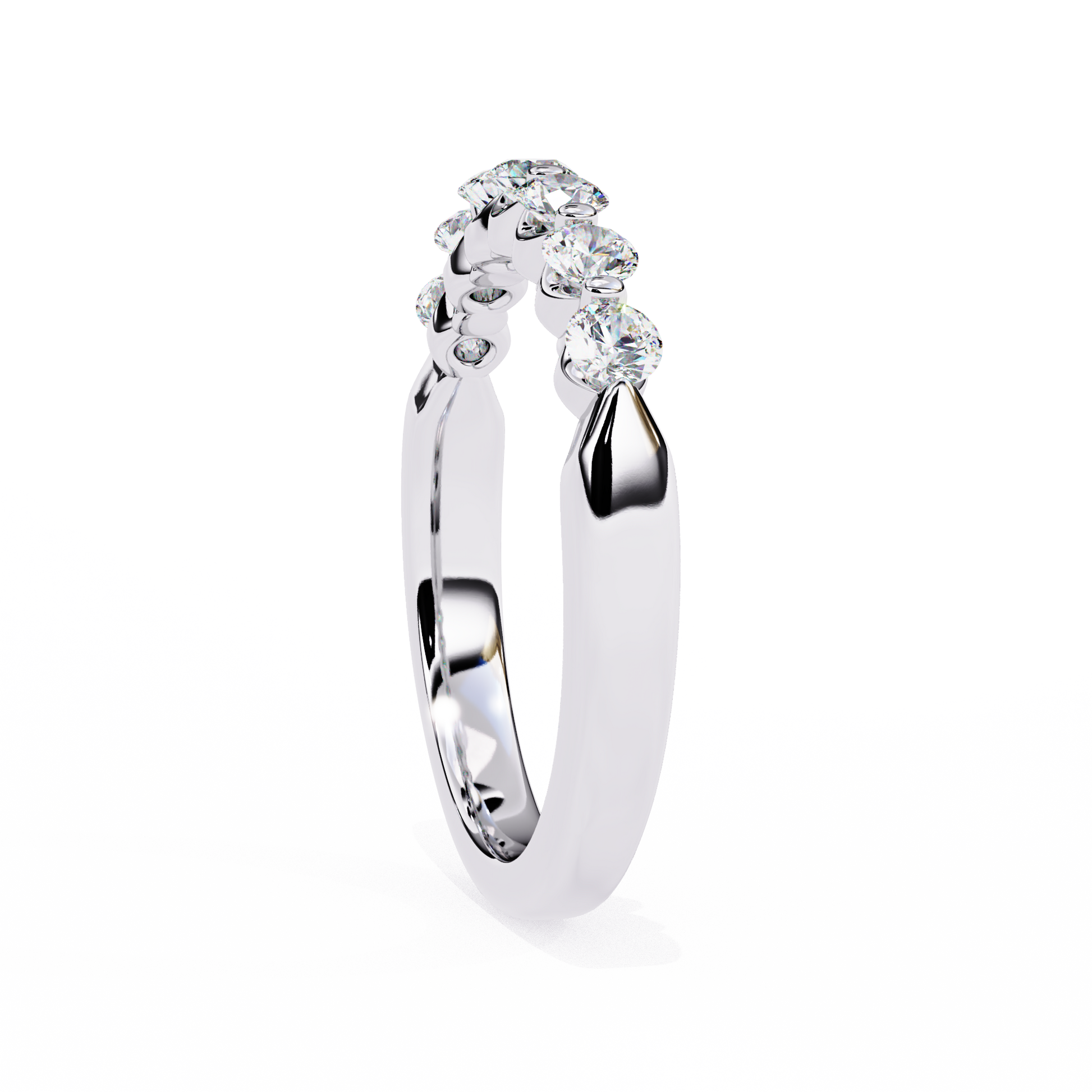This stunning half-eternity ring is crafted from premium and adorned with a row of brilliant round-cut diamonds that radiate exceptional fire and clarity. Each diamond is secured in a delicate prong setting, allowing maximum light to enter and creating a dazzling, uninterrupted line of sparkle. Designed for lovers of timeless elegance, this piece is ideal for weddings, anniversaries, or as a refined addition to any luxury jewelry collection. Its blend of classic design and superior craftsmanship makes it a cherished symbol of lasting beauty.