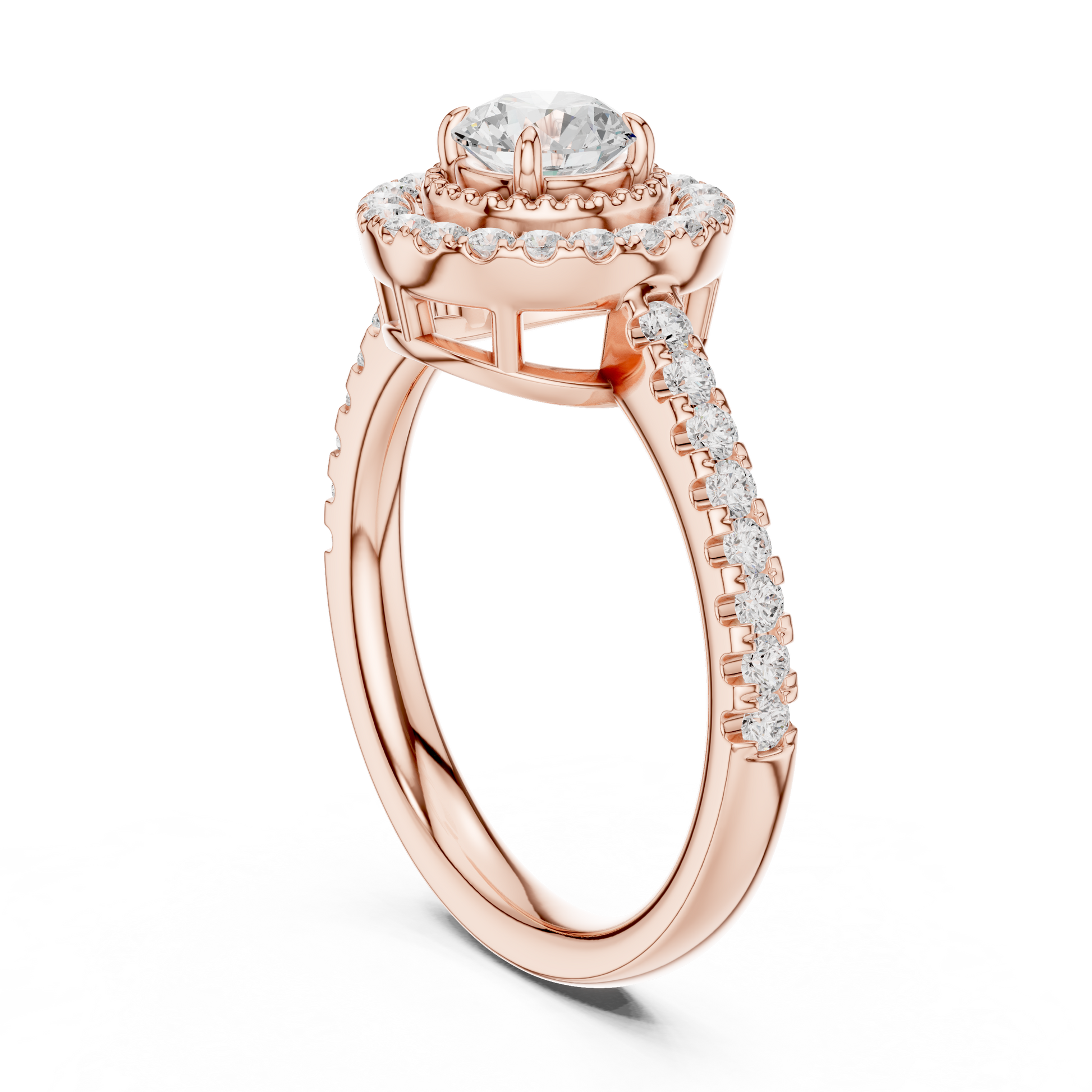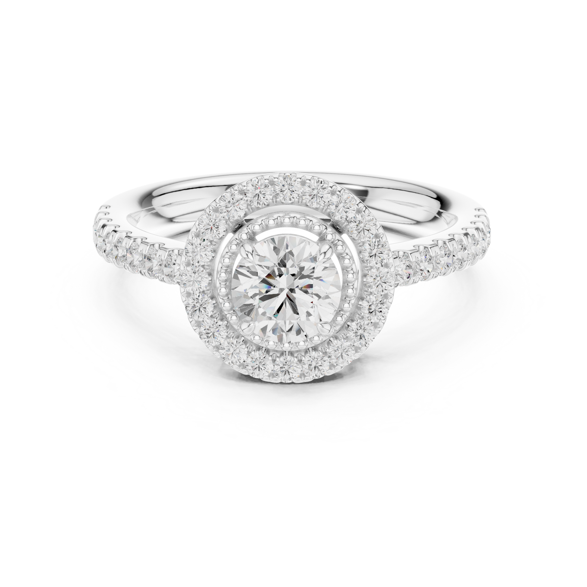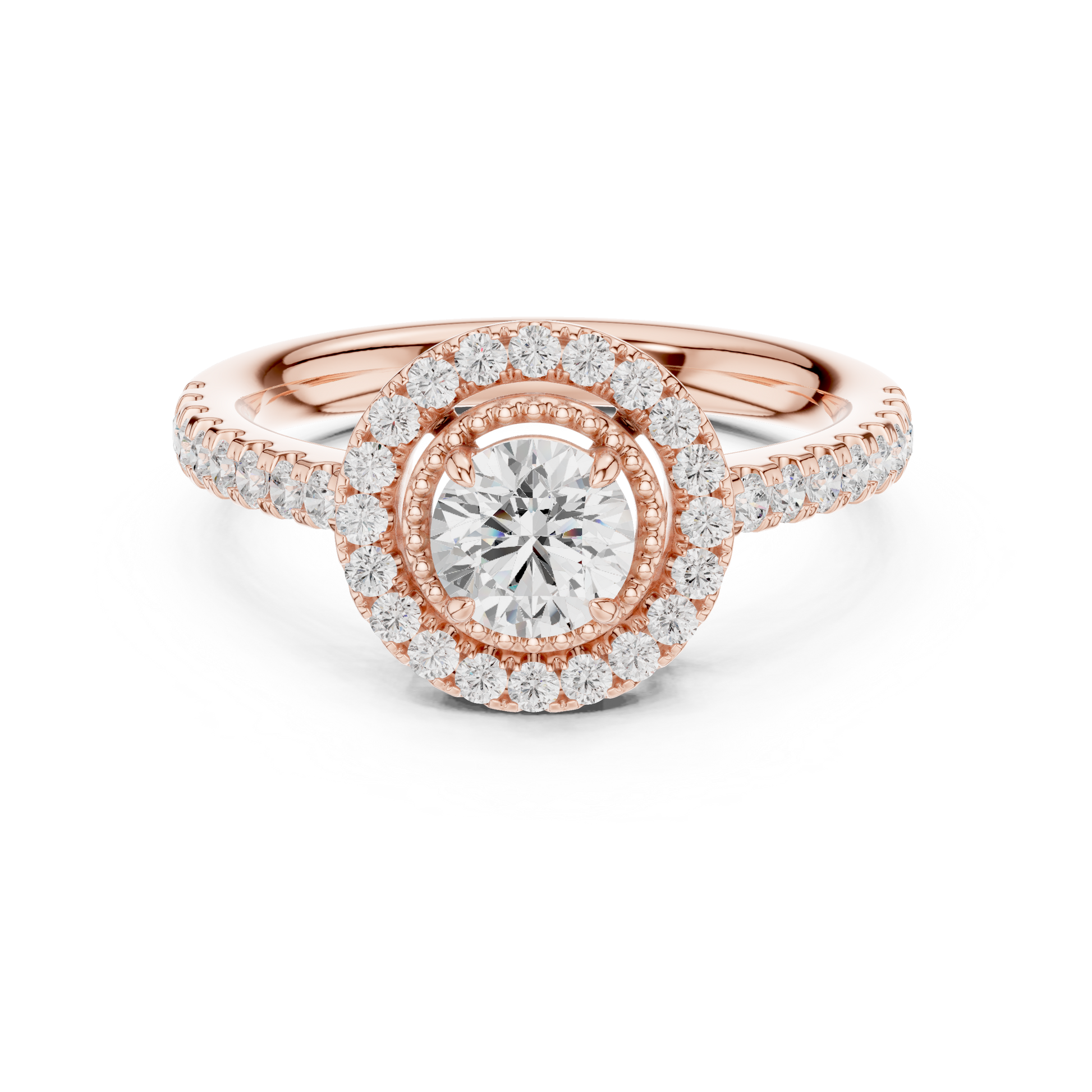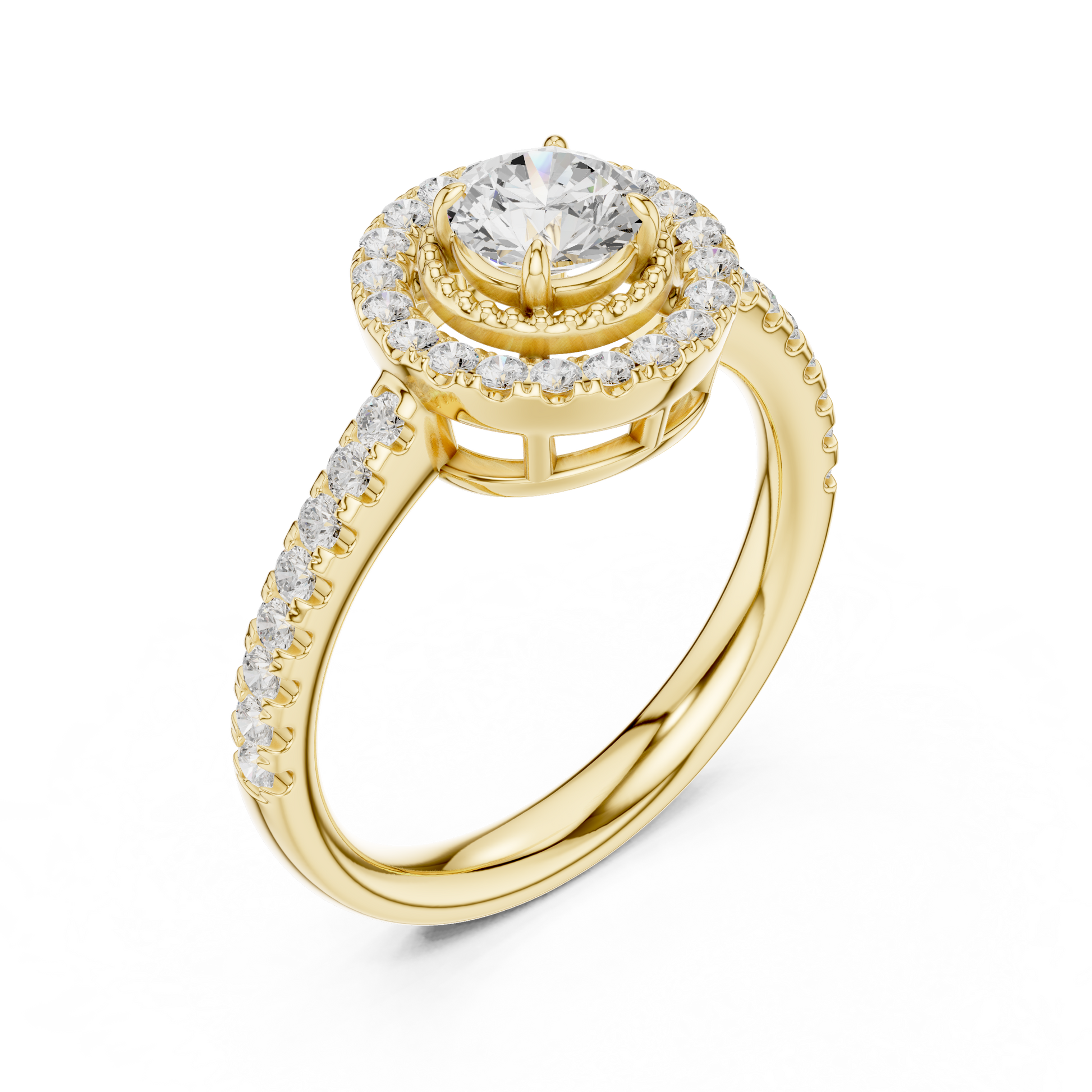 Elevate every moment with this breathtaking Round-Cut Halo Diamond Ring, exquisitely crafted in luminous gold. At its center sits a dazzling round diamond, encircled by a radiant halo of meticulously set accent stones that magnify its brilliance from every angle. The pavé-set band adds an elegant trail of sparkle, creating a seamless flow of fire and light. Designed to symbolize love, devotion, and timeless beauty, this ring is a statement of sophistication—perfect for engagements, anniversaries, or luxury gifting. A true masterpiece for those who desire brilliance that never fades.