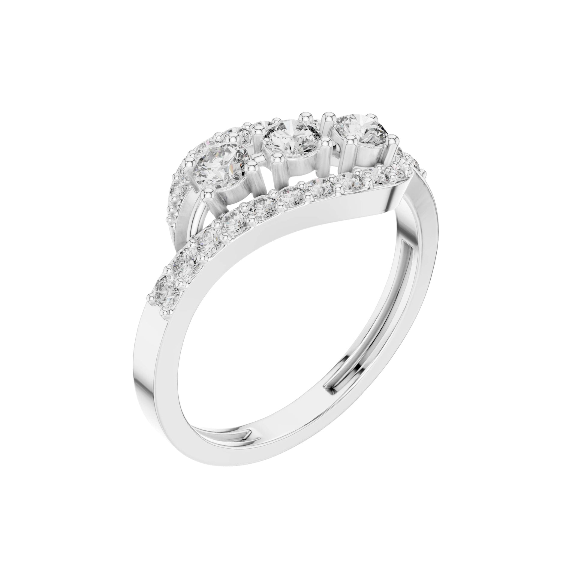 0.53 TCW Interwoven Lab Grown Ring with Three Round Brilliant Diamonds and Pave Diamond Accents