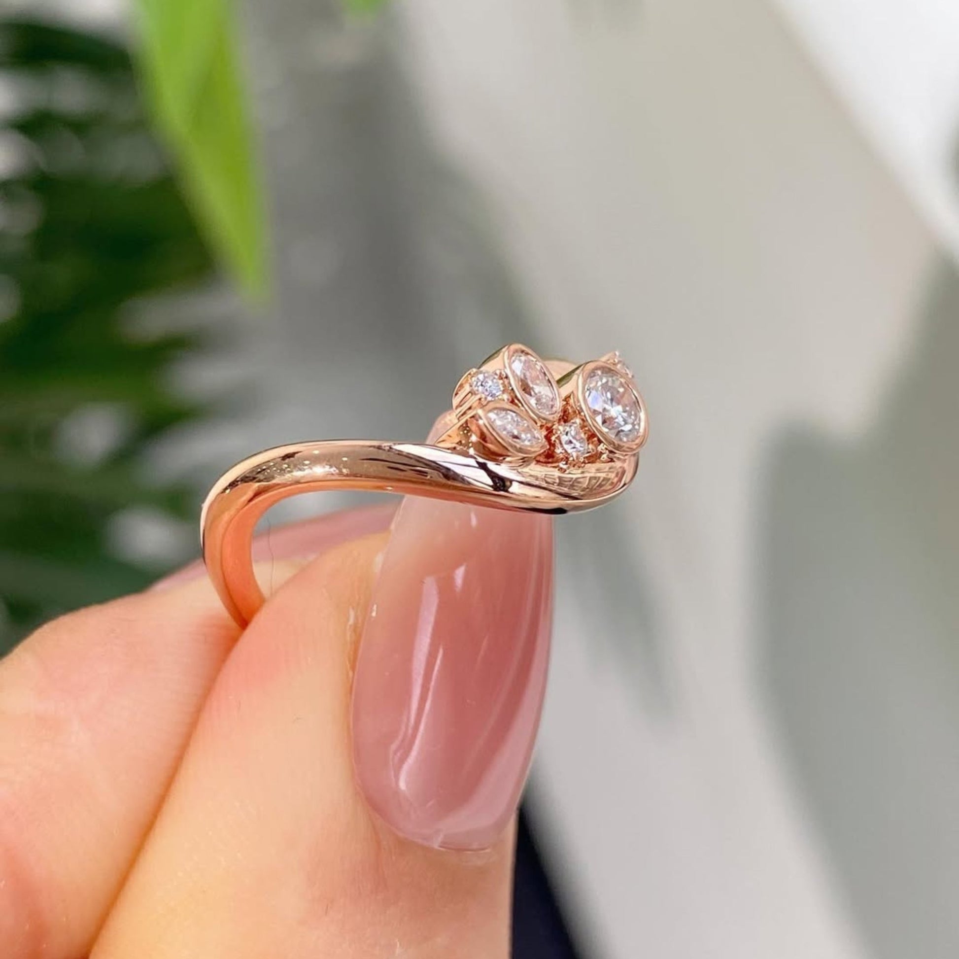 This rose gold diamond crown ring features a graceful curved silhouette accented with round and marquise-inspired diamond details for a regal yet modern look. Designed to sit perfectly as a stacking band, wedding enhancer, or fashion statement, this ring delivers delicate sparkle, refined craftsmanship, and contemporary luxury. A perfect choice for those who love unique fine jewelry with a royal touch.