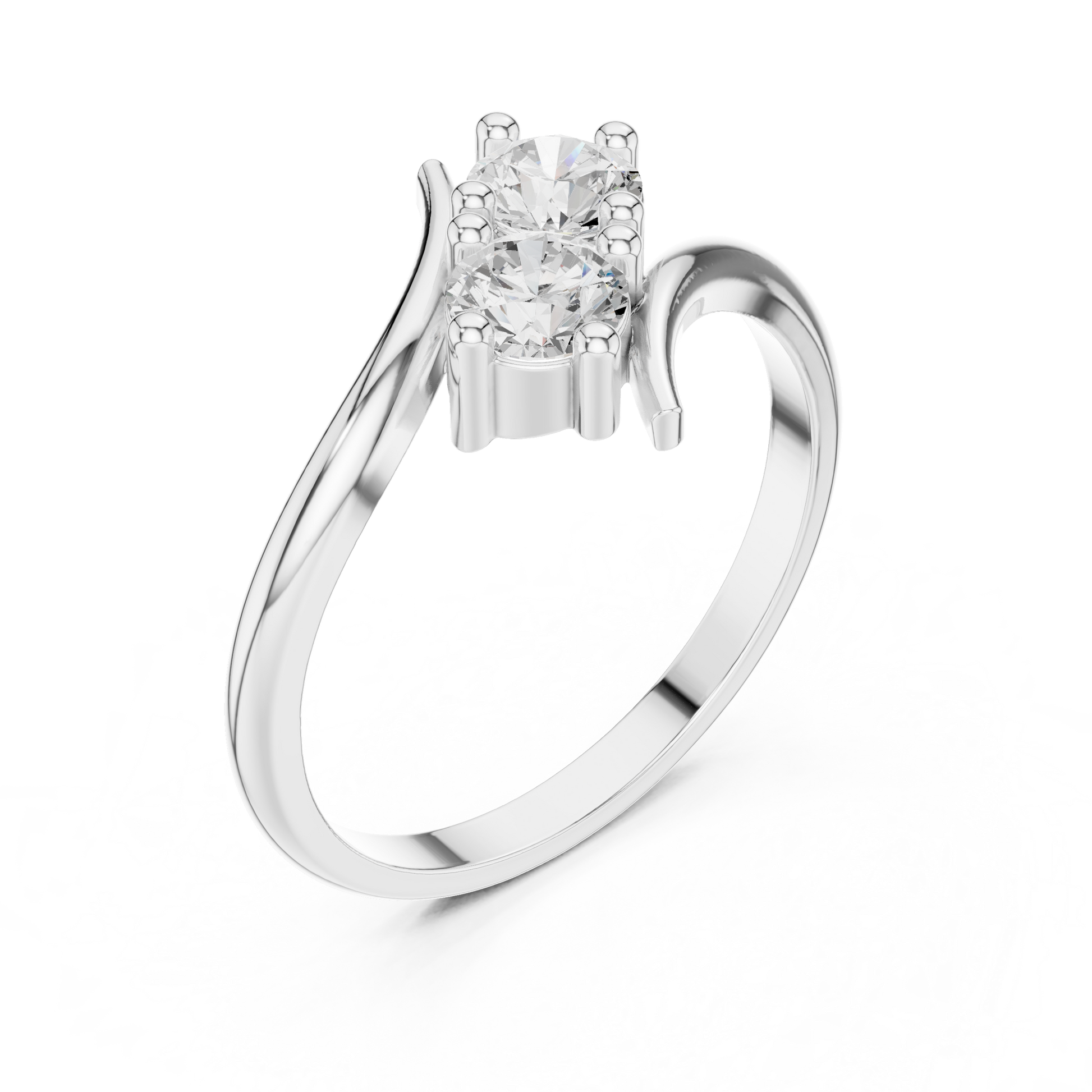 This contemporary gold ring features a graceful bypass silhouette that cradles two brilliant round diamonds in a floating embrace. Smooth sculpted curves sweep around the stones, creating a balanced and modern aesthetic with striking sparkle. Designed for everyday elegance or meaningful gifting, this ring blends artistic flow with timeless diamond brilliance.