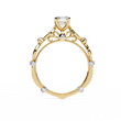 This elegant ring features a captivating round brilliant-cut center diamond set in a classic four-prong mount. The gold band is adorned with alternating round bezel-set diamond accents, creating a vintage aesthetic rich with detail and charm. Intricate milgrain edging enhances the antique-inspired design, adding depth and refined craftsmanship. With its timeless sparkle and ornate artistry, this ring offers a perfect blend of sophistication and romantic vintage allure—ideal for engagements or meaningful celebrations.