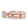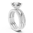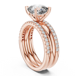 An exquisite symbol of balance and devotion, this cushion-cut diamond ring showcases a luminous center stone embraced by dual pavé-set gold bands that create a striking sense of symmetry and brilliance. The layered design enhances the diamond’s natural fire while adding depth and contemporary elegance.Crafted in rich, the smooth inner band contrasts beautifully with the sparkling pavé accents, offering both comfort and visual impact.