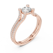 Radiating regal elegance, this round-cut diamond ring is designed to make a powerful yet graceful statement. The brilliant center diamond is elevated by a distinctive triple pavé-set band, creating layers of shimmering light that enhance its fire and brilliance. Sculpted prongs accented with bezel-set diamonds add depth, symmetry, and a touch of contemporary refinement.Crafted in luxurious gold, this ring blends architectural beauty with timeless sophistication.