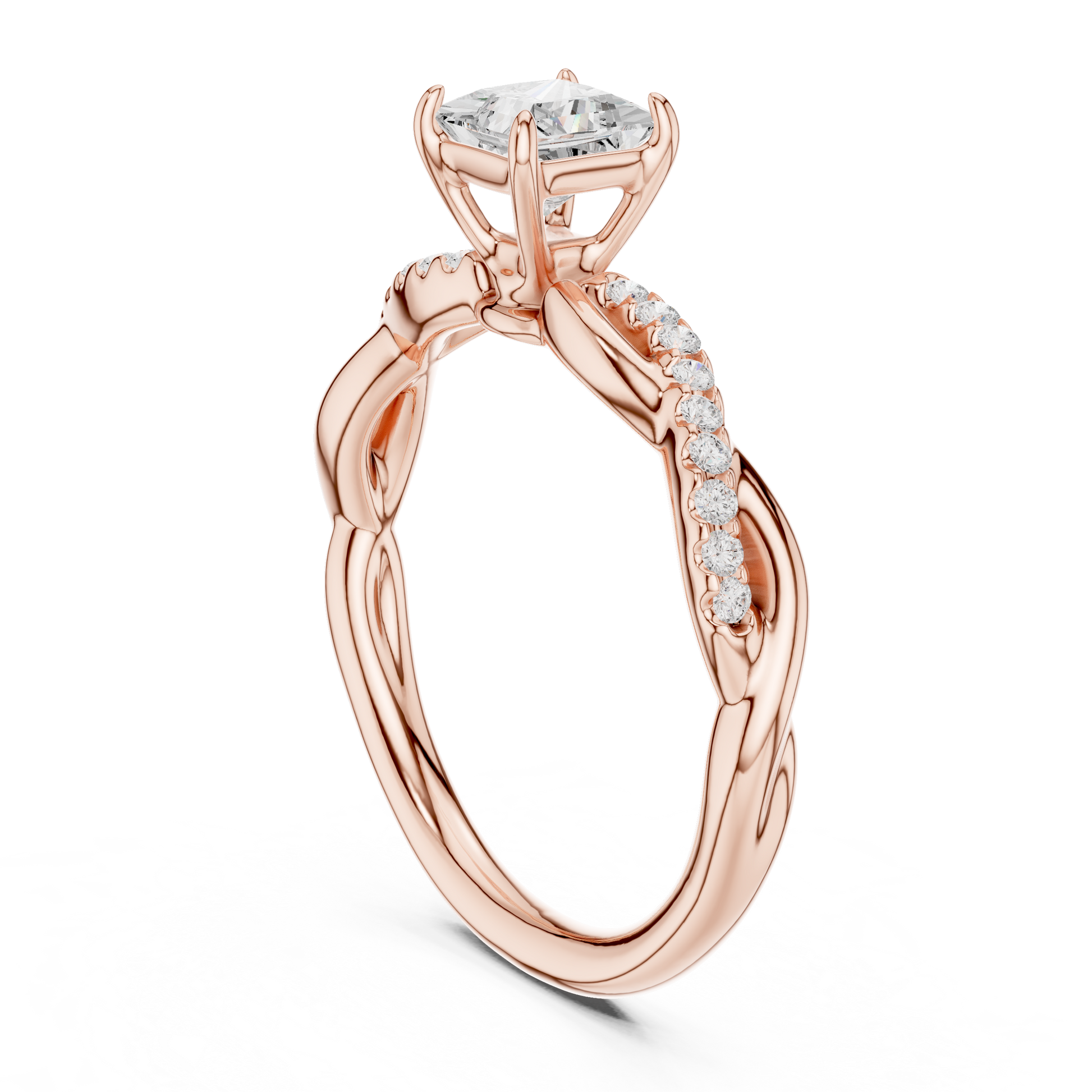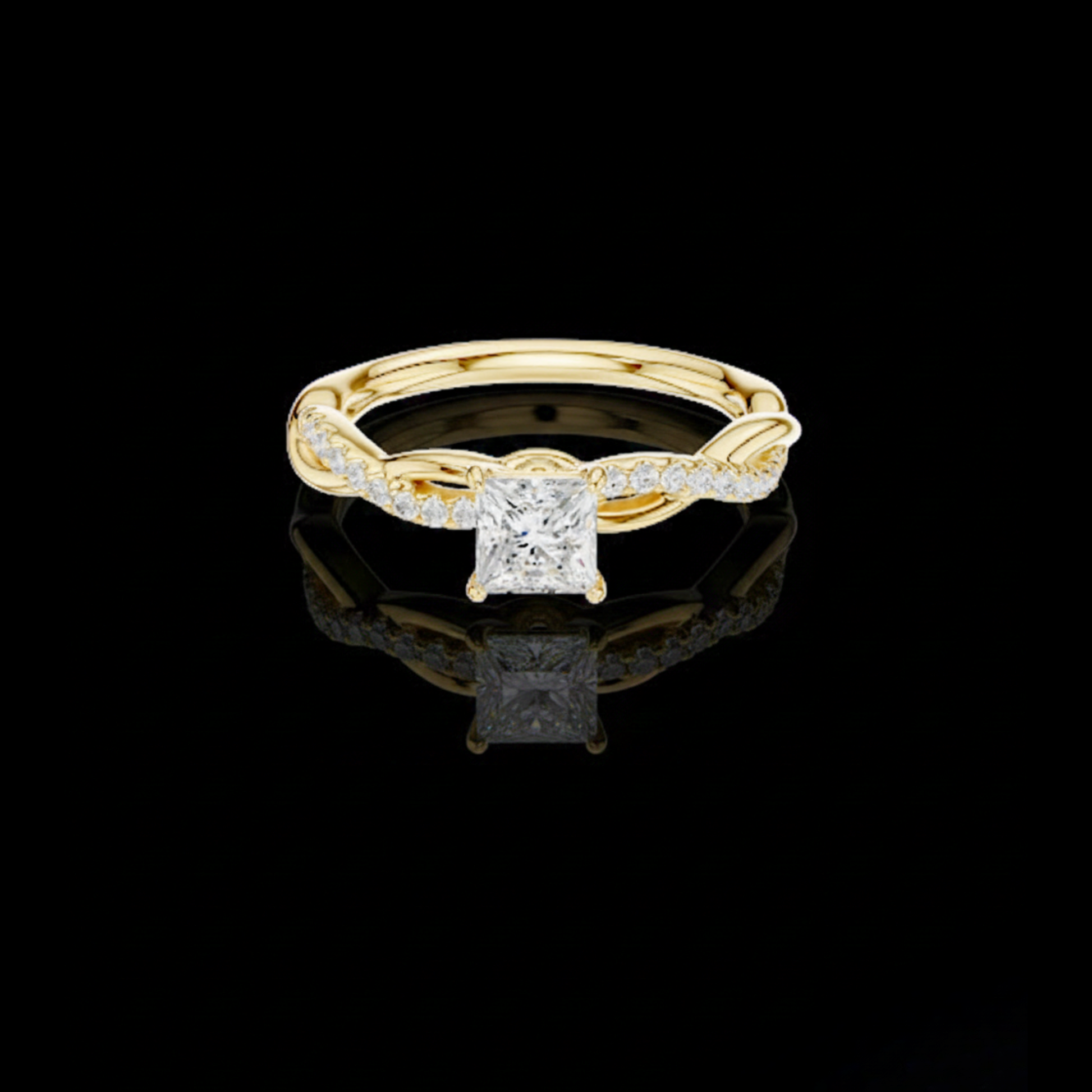 Introducing an exceptional piece from Ivevar Luxury, this stunning ring showcases a brilliant princess-cut centerpiece that radiates clean, geometric sophistication. Its twisted gold band is elegantly accented with shimmering pave stones, creating a beautiful balance between modern design and timeless romance. The smooth, high-polish finish elevates the ring’s luxurious appeal, ensuring it stands out effortlessly for any occasion.