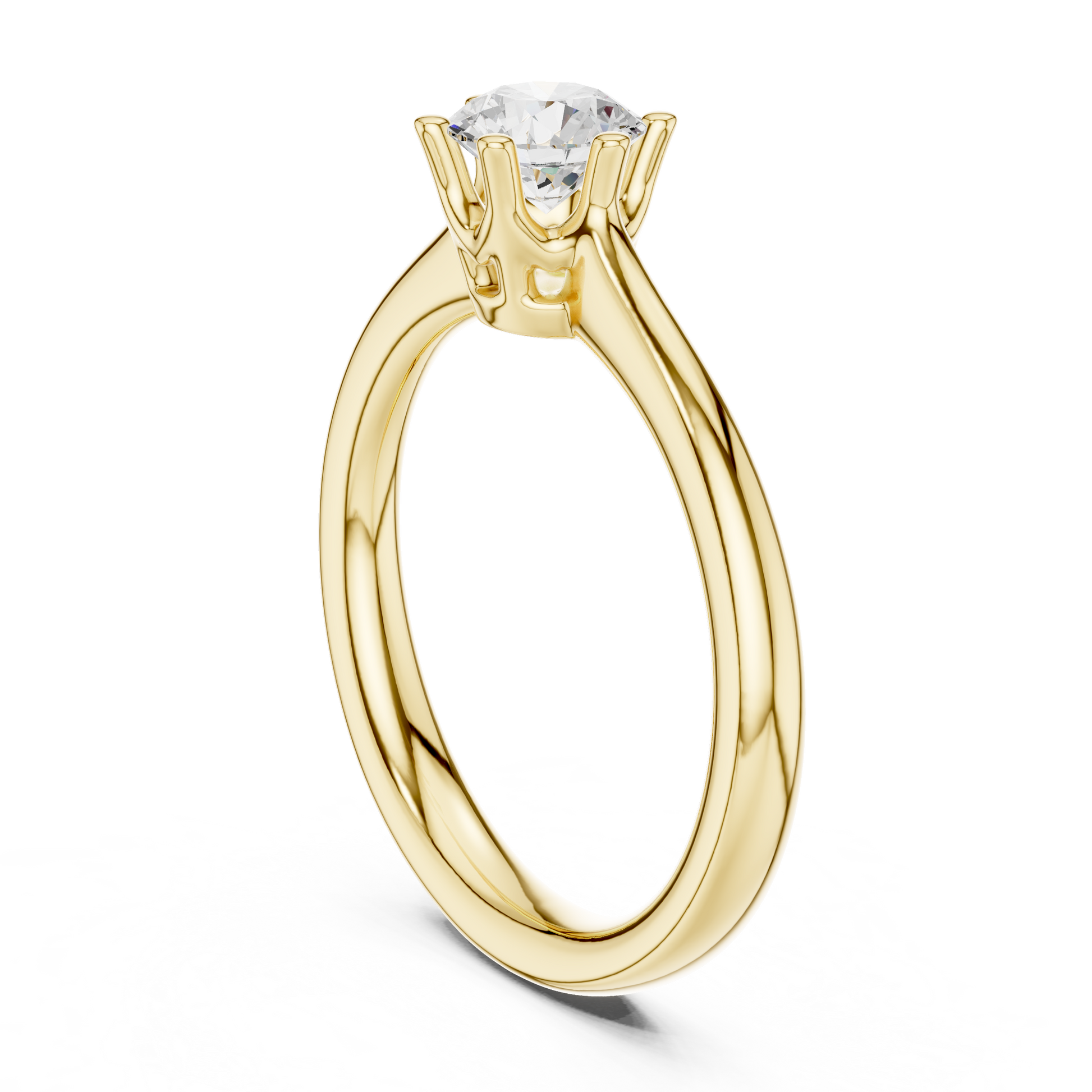 Introducing a masterpiece from Ivevar Luxury, designed for those who adore timeless sparkle and elevated elegance. The ring showcases a stunning round-cut diamond secured in a sleek six-prong setting, maximizing brilliance from every angle. Its high-polished gold band adds a warm, luxurious glow that enhances the diamond’s radiance. With smooth, rounded edges and a minimalist silhouette, this piece embodies refined sophistication.