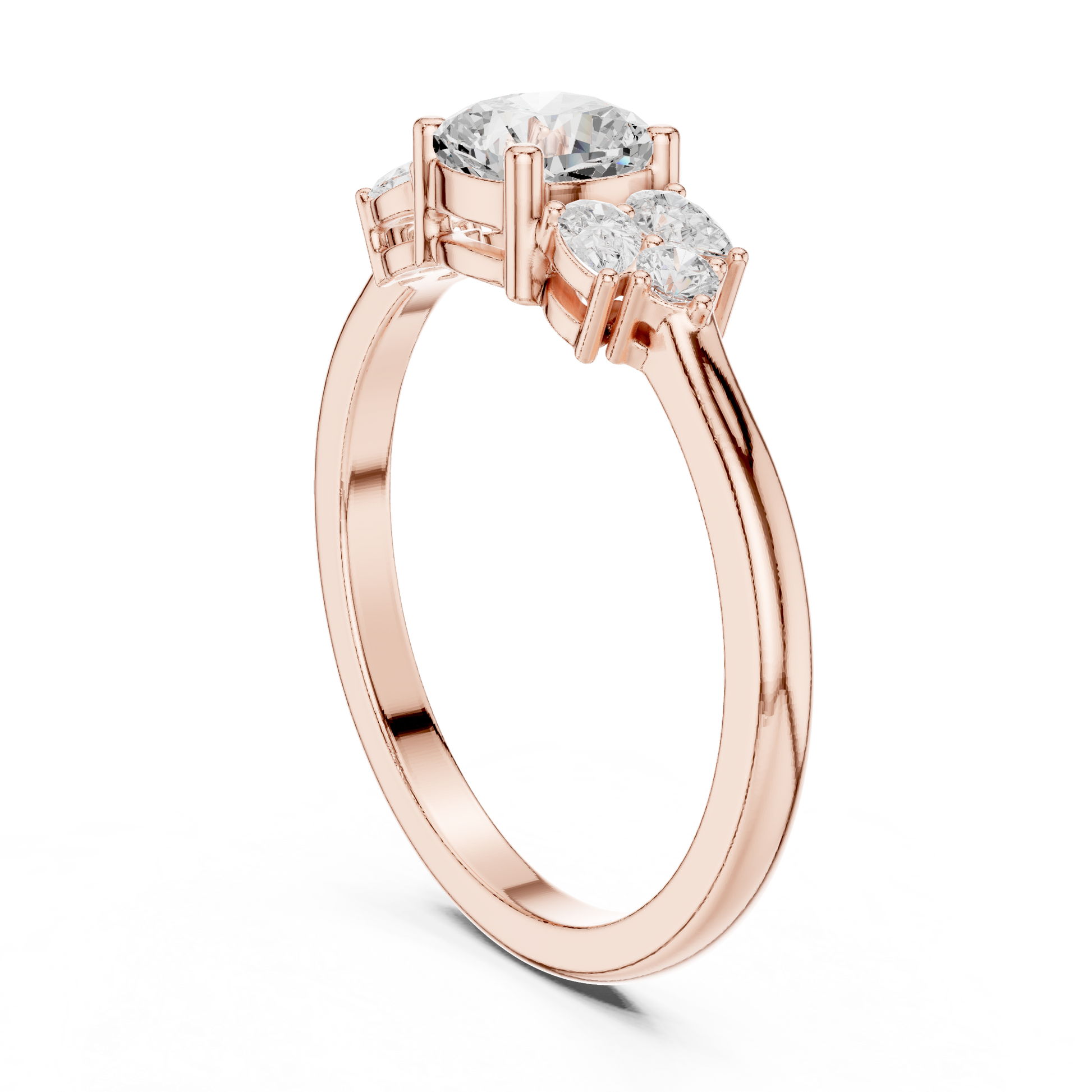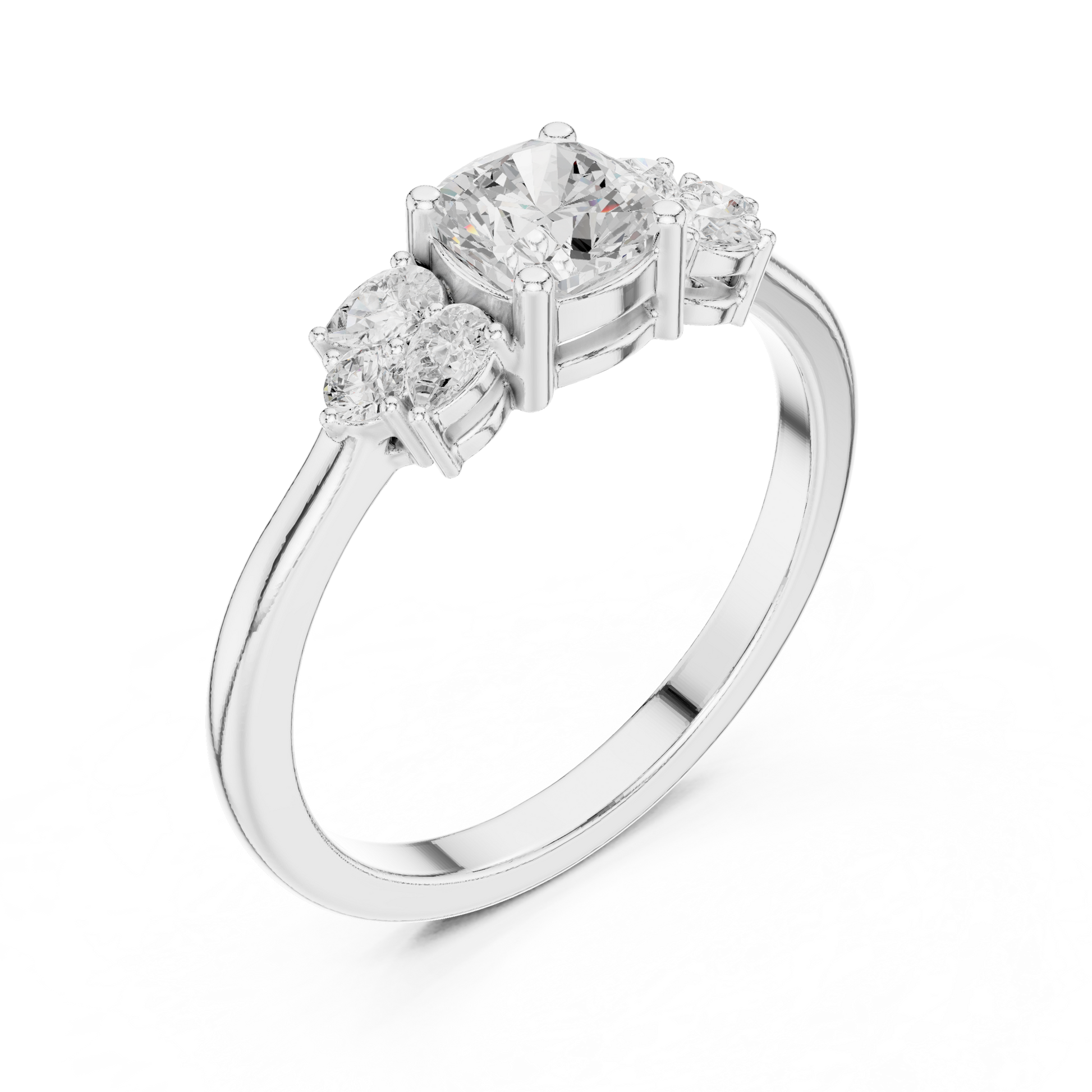 The Grace Diamond Ring is a celebration of refined beauty and modern romance. At its heart lies a sparkling cushion-cut diamond, meticulously set to capture light from every angle. Flanked by delicate round brilliant diamonds, the center stone appears larger, brighter, and irresistibly captivating. Crafted in luxurious the smooth band adds warmth and sophistication while ensuring lasting comfort and durability.