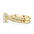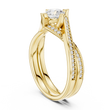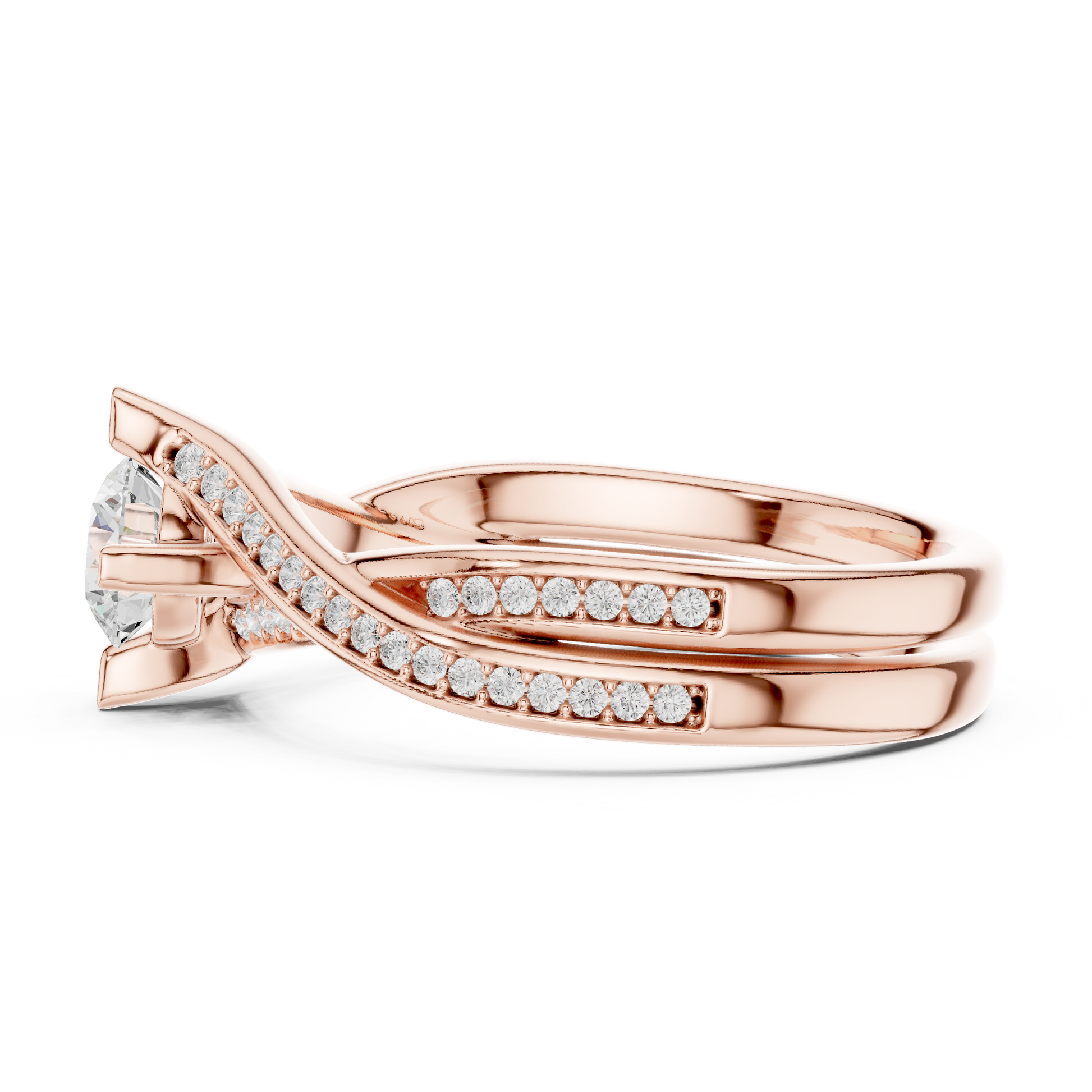 A graceful symbol of everlasting connection, this round-cut diamond ring features a beautifully intertwined crisscross band that wraps around the center stone in a seamless embrace. The brilliant round diamond is elevated by delicate pavé-set diamonds woven into the flowing yellow gold design, creating movement, depth, and luminous sparkle.Crafted in, this ring balances modern artistry with timeless elegance, offering a refined yet romantic silhouette.