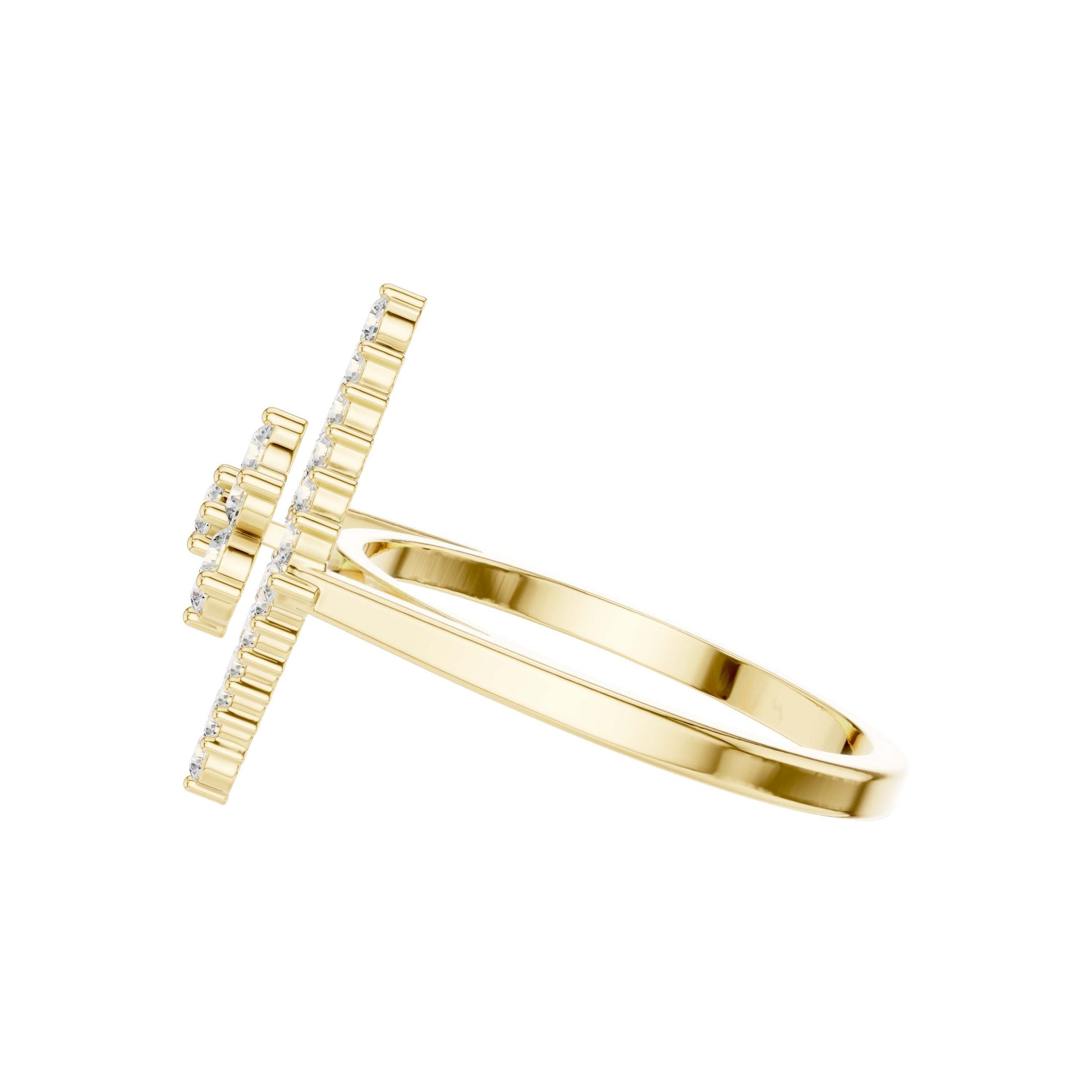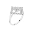 This captivating gold ring features a bold geometric design centered around a radiant diamond cluster framed by an open diamond-shaped halo. Brilliant round-cut diamonds are meticulously set to create layered sparkle and striking symmetry, while the openwork silhouette adds depth and a modern edge. Elegant yet distinctive, this ring blends contemporary design with timeless brilliance, making it a standout statement piece for special occasions or elevated everyday wear.