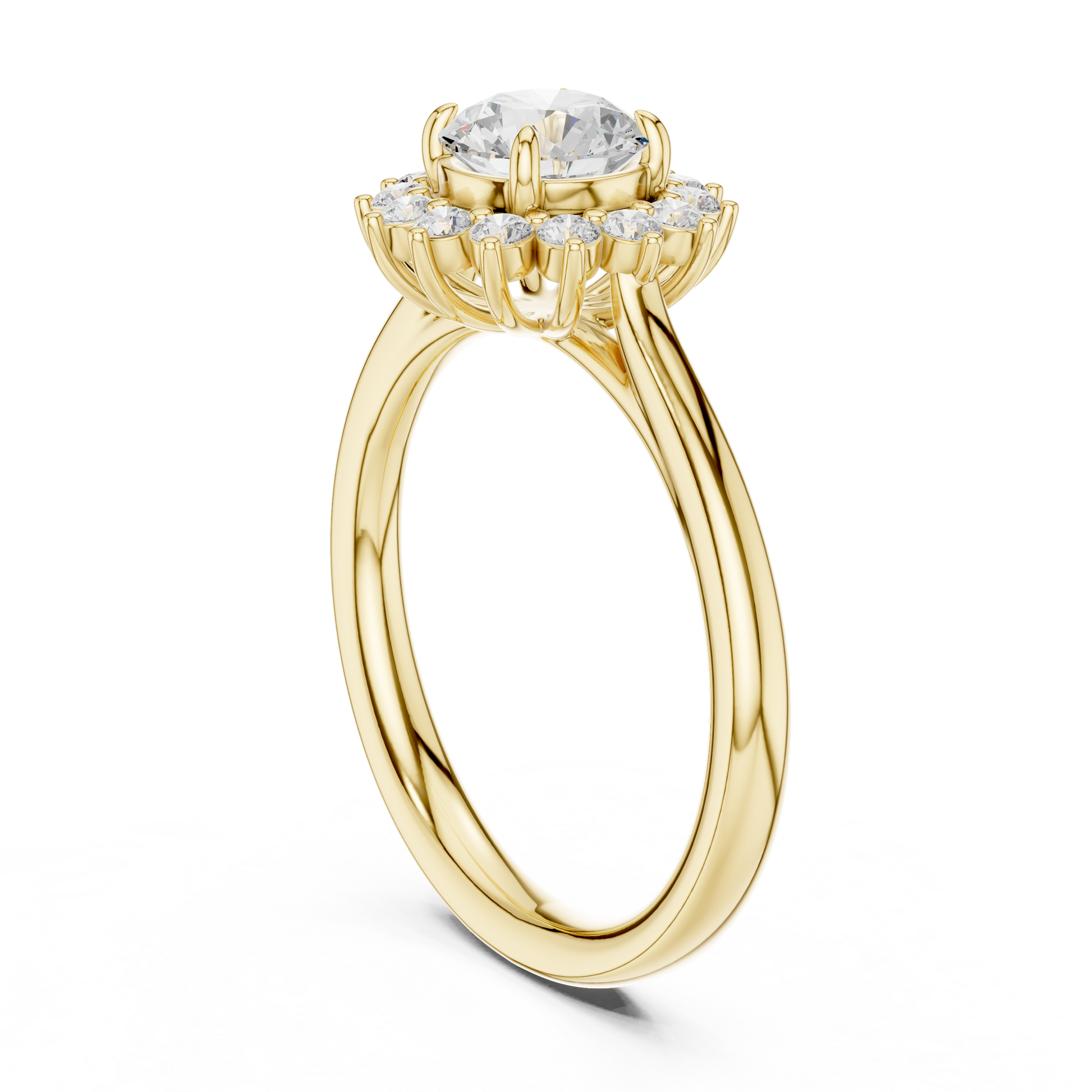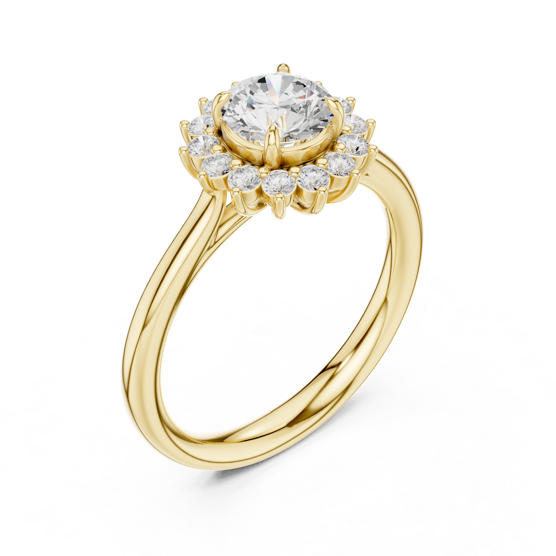 Elevate your elegance with this captivating Floral Halo Diamond Ring, exquisitely crafted in luminous 18K yellow gold. The centerpiece features a brilliant round-cut diamond encircled by a blooming halo of smaller diamonds, creating a breathtaking floral silhouette that sparkles from every angle. Designed for those who adore timeless glamour with a modern touch, this ring is perfect for engagements, celebrations, or simply indulging in luxury that lasts forever.