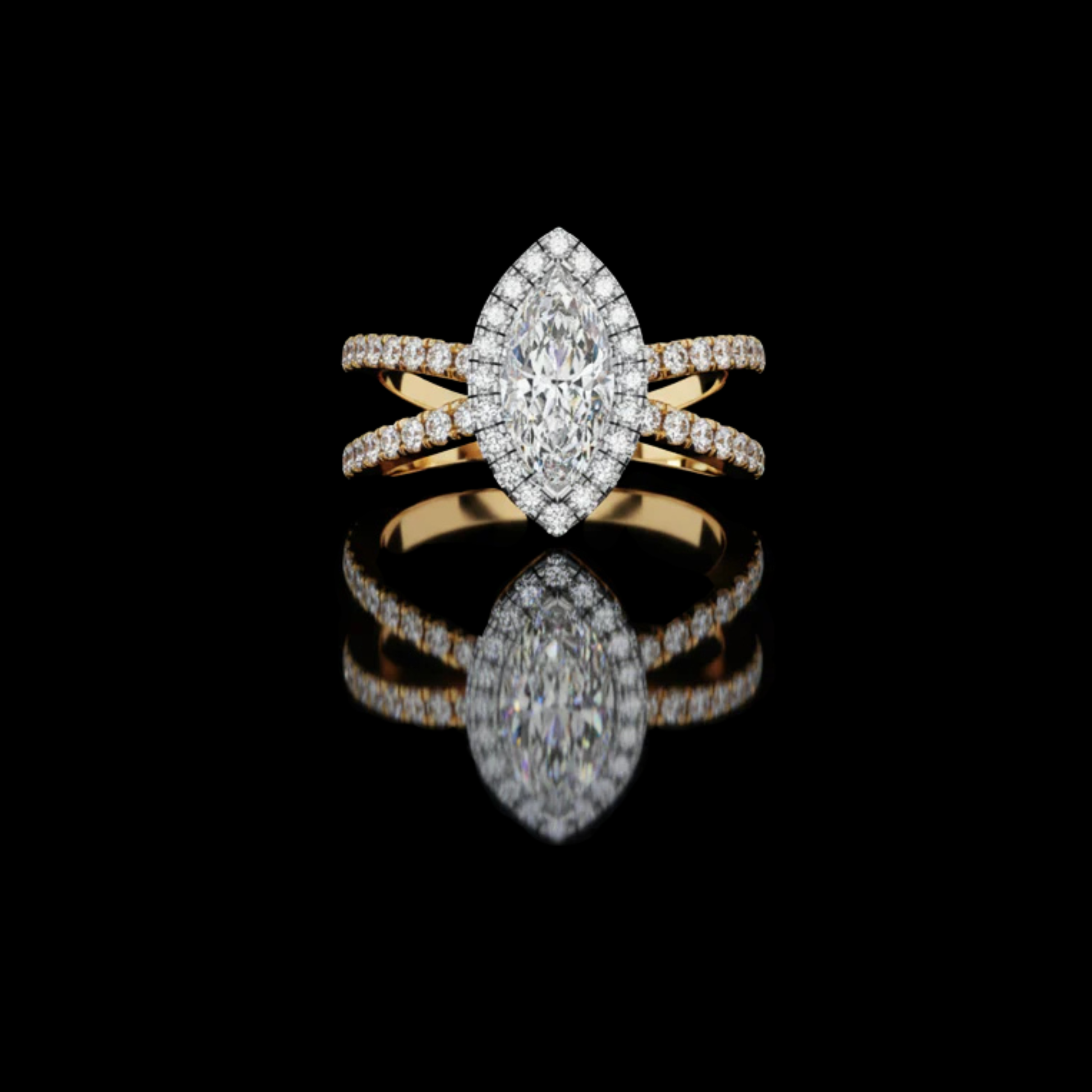 Experience pure elegance with this stunning Ivevar Luxury ring, featuring a brilliant marquise-cut center diamond framed by a radiant halo. Set on a split-shank band adorned with sparkling micro-pave stones, it embodies timeless beauty and refined craftsmanship. Perfect for engagements, anniversaries, or special moments, this piece adds unforgettable sophistication to any occasion an exquisite statement of luxury from Ivevar Luxury.