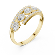 This striking gold band showcases a contemporary floating design with brilliant round diamonds set in individual stations, framed by two elegant pave diamond rails. The layered structure adds depth and dimension, creating a bold yet refined silhouette that sparkles from every angle. Designed for those who appreciate modern craftsmanship and elevated luxury, this ring is perfect as a statement piece, anniversary band, or fashion-forward everyday jewelry.