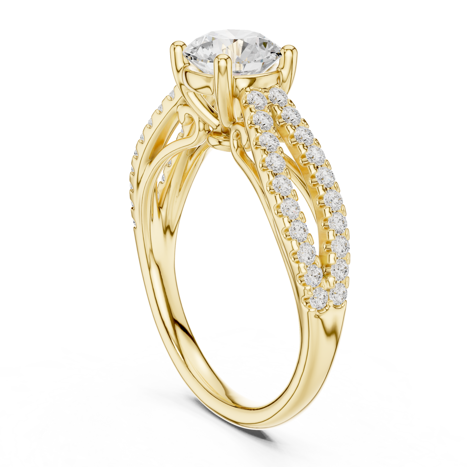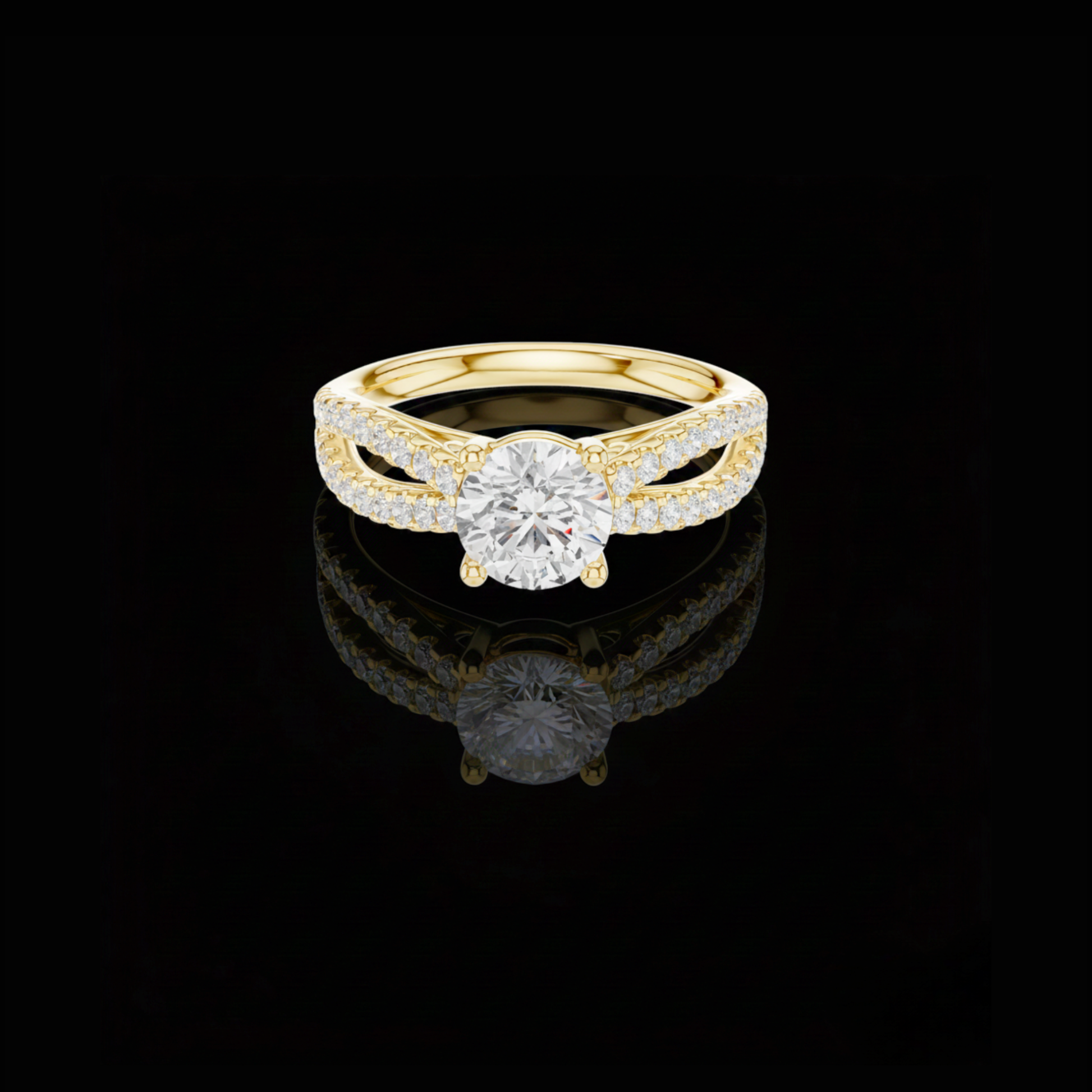 Discover the brilliance of Ivevar Luxury with this breathtaking engagement ring, featuring a radiant round-cut solitaire diamond that captures light from every angle. The elegant split shank design, adorned with two rows of pave-set diamonds, adds depth, sparkle, and modern sophistication to the classic gold band. Crafted with exquisite precision, this ring blends timeless beauty with luxurious craftsmanship, creating a perfect symbol of devotion.