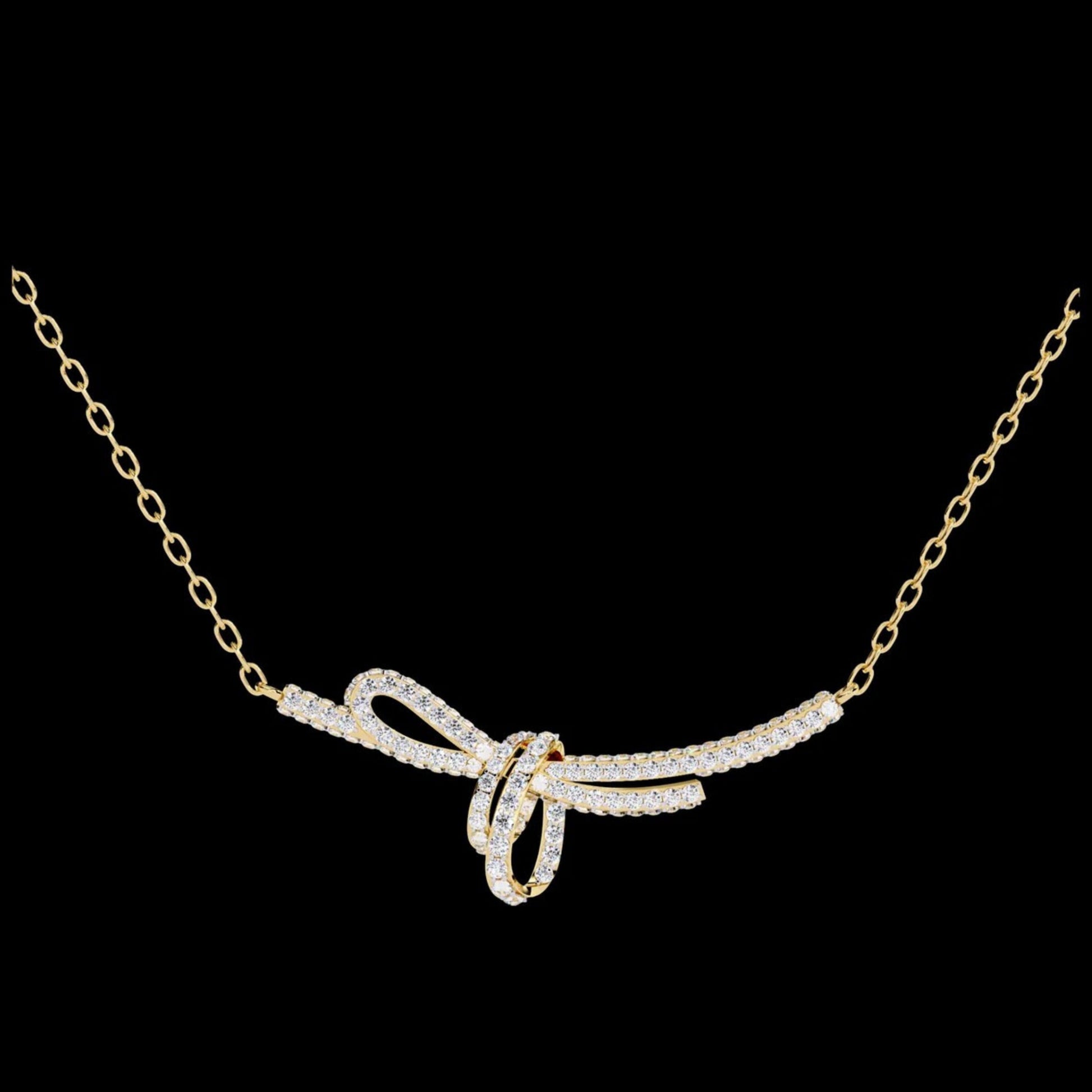 Embrace the allure of sophistication with the Ivevar Luxury Diamond Knot Necklace, a symbol of eternal grace and refined style. this exquisite piece features a delicate bow design adorned with a constellation of Round-cut diamonds that shimmer with every movement. The intricate knot detail represents unbreakable b onds and timeless love, making it an unforgettable statement of elegance. Each diamond is meticulously hand-set to enhance its radiant brilliance, reflecting the artistry and prestige of the Ivevar Luxury collection. Perfect for special occasions or as a cherished gift, this necklace embodies pure opulence and enduring beauty.