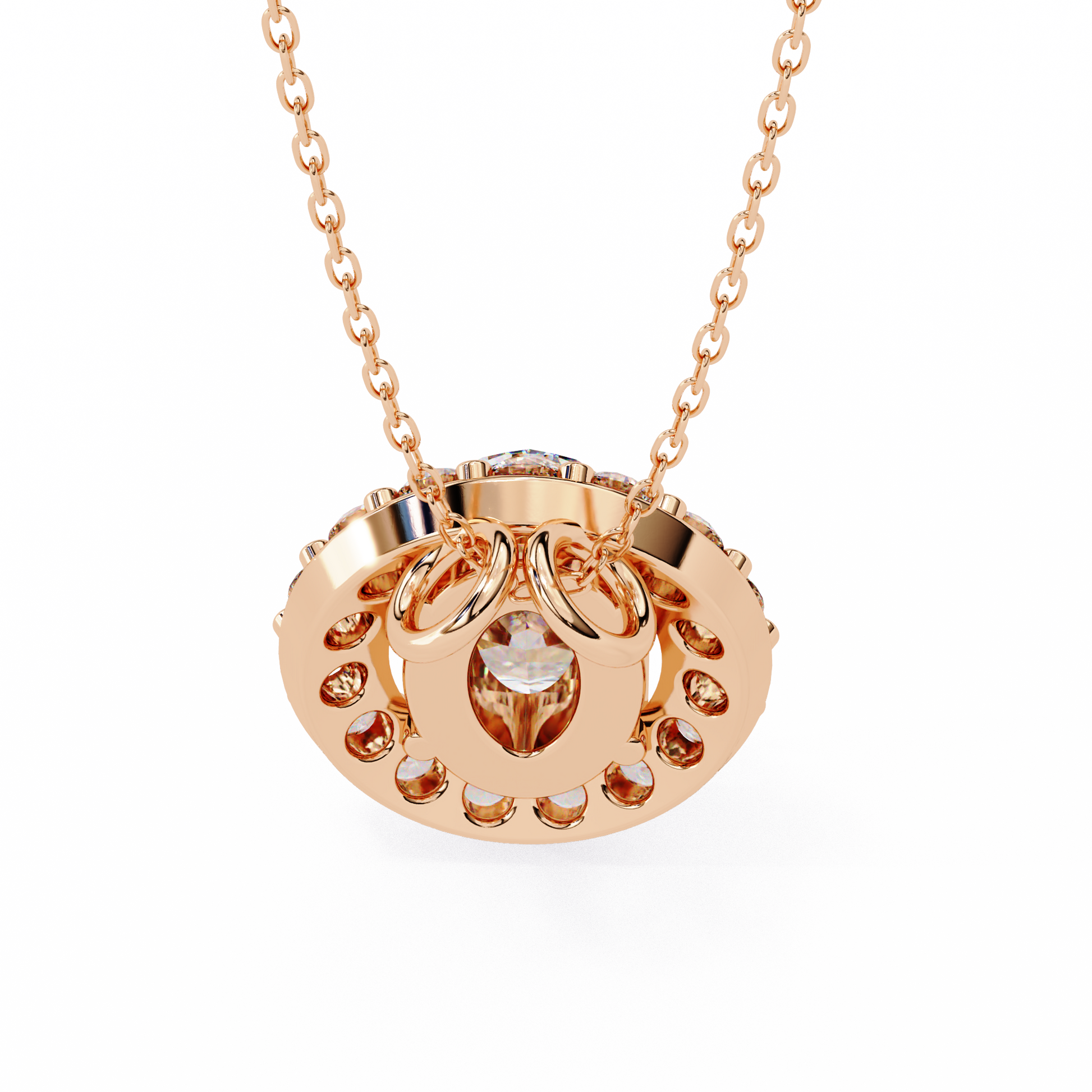 This stunning pendant showcases a Radiant Oval Cut Diamond at its center, surrounded by a brilliant halo of smaller round diamonds that enhance its captivating sparkle. Set in lustrous gold, the piece perfectly balances timeless elegance with luxurious sophistication from Ivevar. Its refined craftsmanship and dazzling brilliance make it an exquisite statement of beauty and grace, ideal for both everyday wear and special occasions.