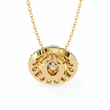 This stunning pendant showcases a Radiant Oval Cut Diamond at its center, surrounded by a brilliant halo of smaller round diamonds that enhance its captivating sparkle. Set in lustrous gold, the piece perfectly balances timeless elegance with luxurious sophistication from Ivevar. Its refined craftsmanship and dazzling brilliance make it an exquisite statement of beauty and grace, ideal for both everyday wear and special occasions.