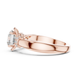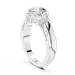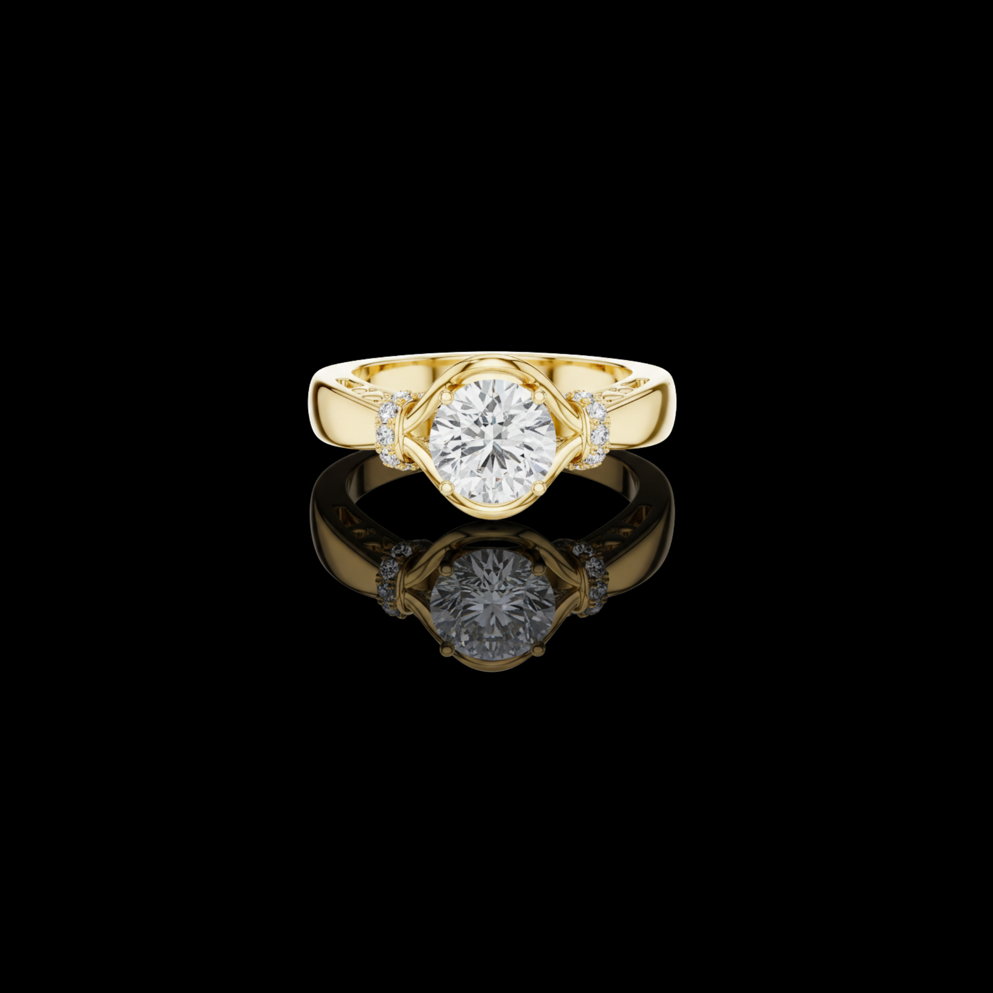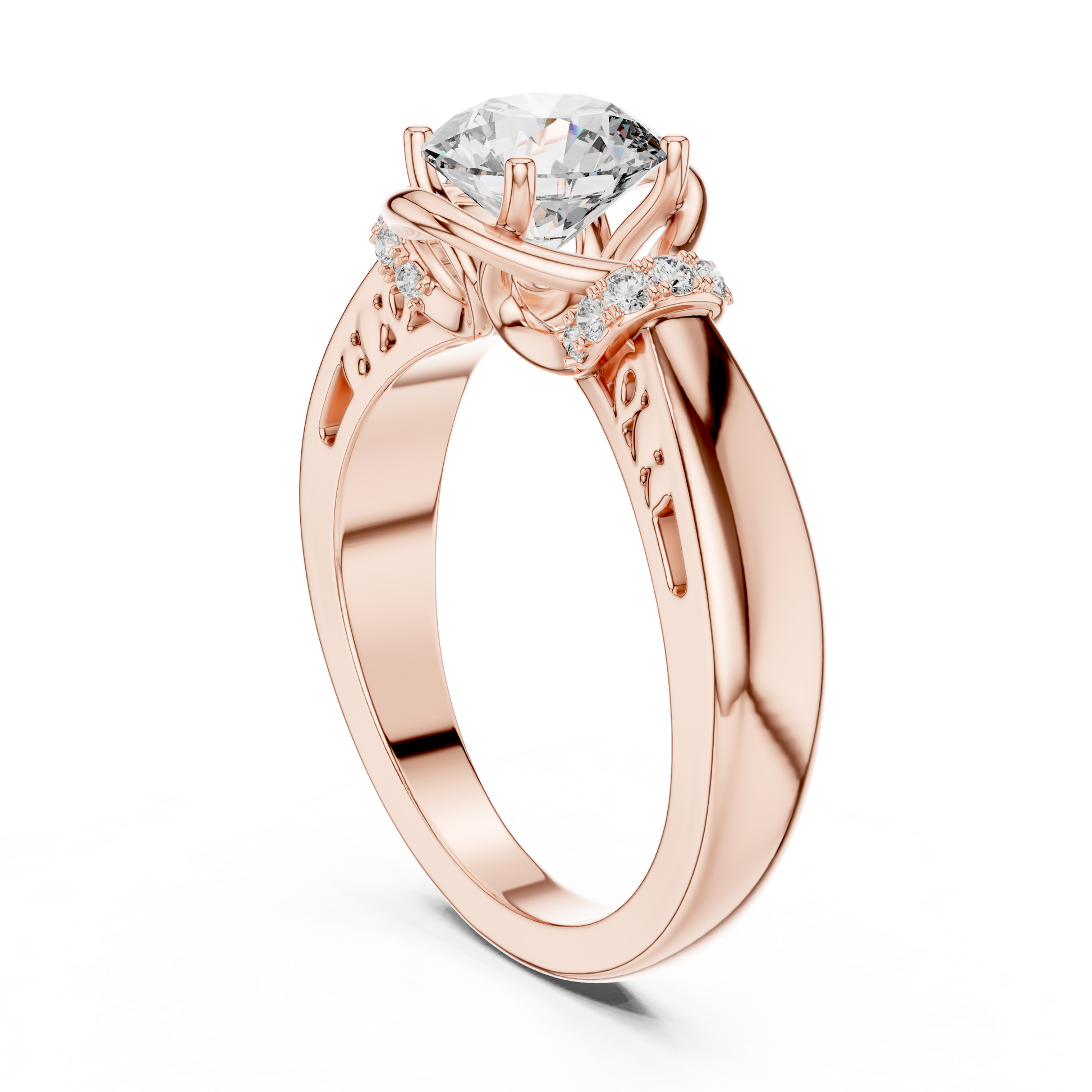 This exquisite ring features a radiant round-cut diamond gracefully cradled in a flowing setting that creates a unique, modern halo effect. Delicate side accent diamonds add depth and brilliance, perfectly complementing the bold center stone. The smooth, polished band offers a luxurious feel while ensuring everyday comfort. Designed to symbolize love, commitment, and timeless elegance, this ring is ideal for engagements, anniversaries, or treasured celebrations, making it a truly unforgettable piece of fine jewelry.