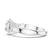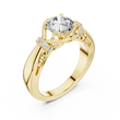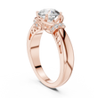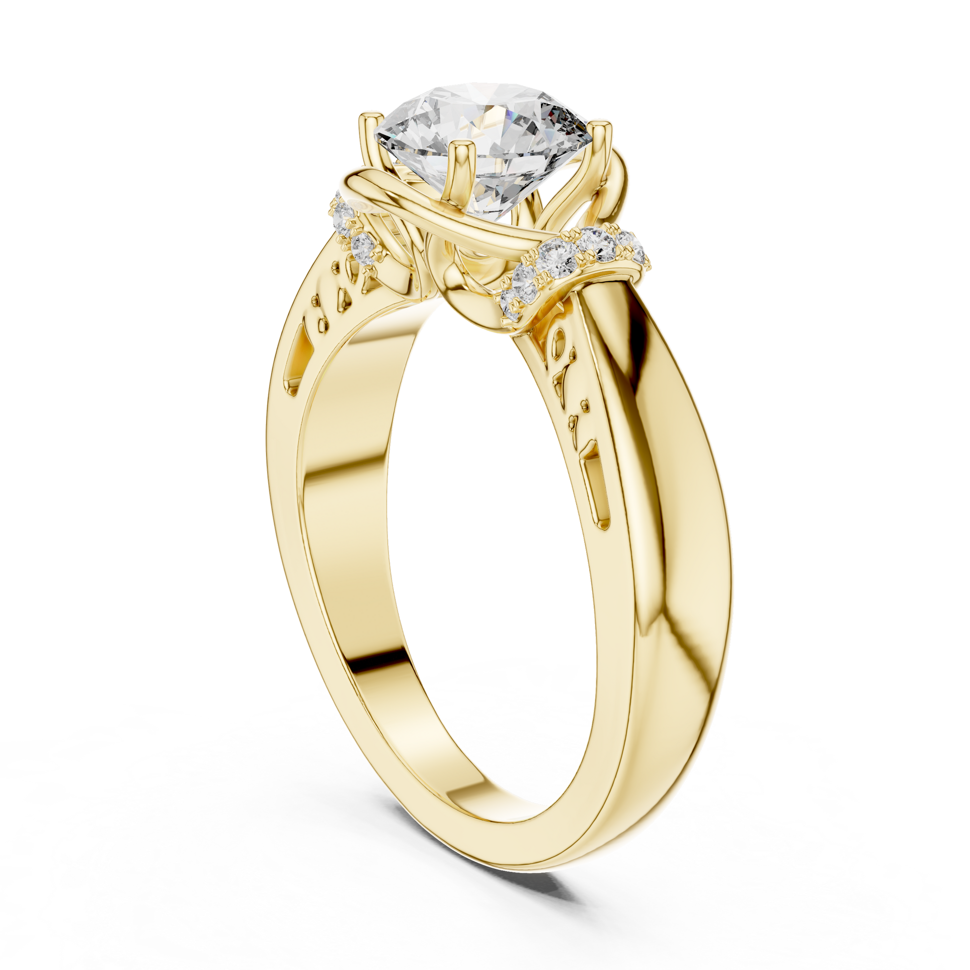 This exquisite ring features a radiant round-cut diamond gracefully cradled in a flowing setting that creates a unique, modern halo effect. Delicate side accent diamonds add depth and brilliance, perfectly complementing the bold center stone. The smooth, polished band offers a luxurious feel while ensuring everyday comfort. Designed to symbolize love, commitment, and timeless elegance, this ring is ideal for engagements, anniversaries, or treasured celebrations, making it a truly unforgettable piece of fine jewelry.